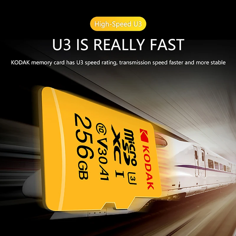 Карта памяти KODAK имеет рейтинг скорости U3, скорость передачи быстрее и стабильнее.