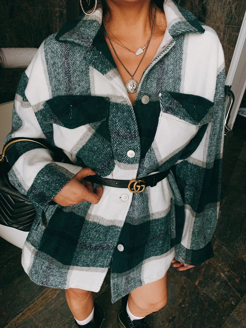 Модная зеленая красная клетчатая куртка для женщин, зимнее пальто с длинным рукавом, офисные пальто и куртки для женщин, куртка-бомбер большого размера 2019