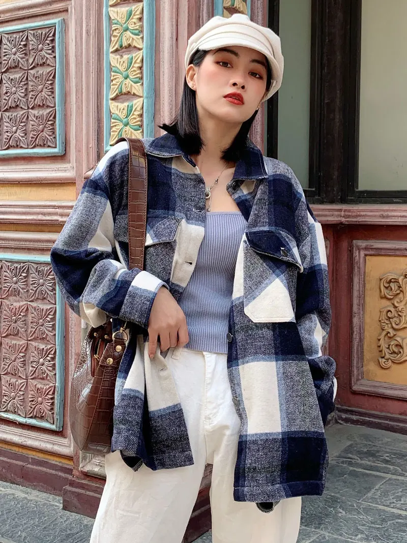 Женская зимняя клетчатая куртка, свободная повседневная клетчатая к...