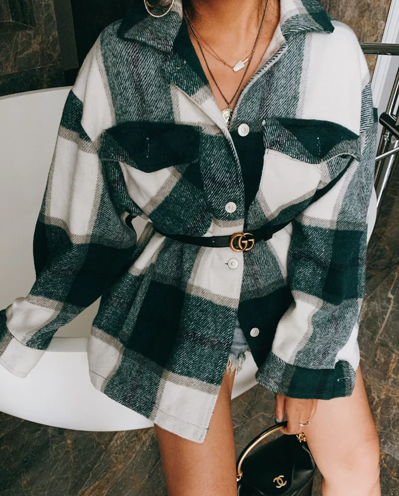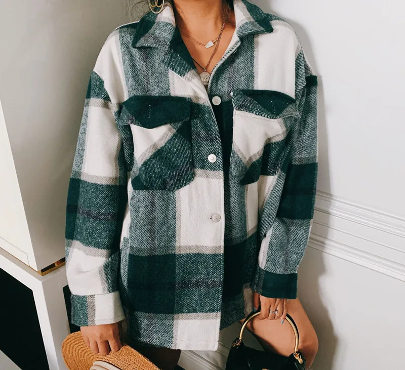 Модная зеленая красная клетчатая куртка для женщин, зимнее пальто с длинным рукавом, офисные пальто и куртки для женщин, куртка-бомбер большого размера 2019