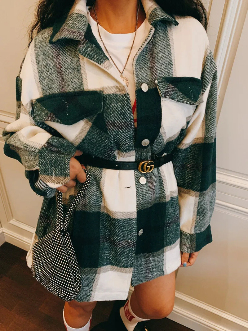 Женская клетчатая куртка, красная или зеленая куртка большого разме...