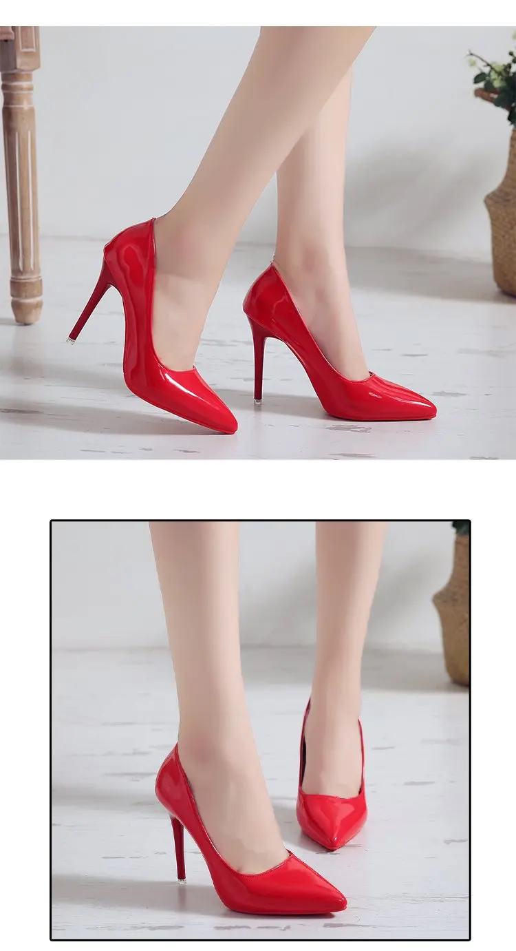 Женские туфли на высоком каблуке, заостренный носок, пикантная крас...
