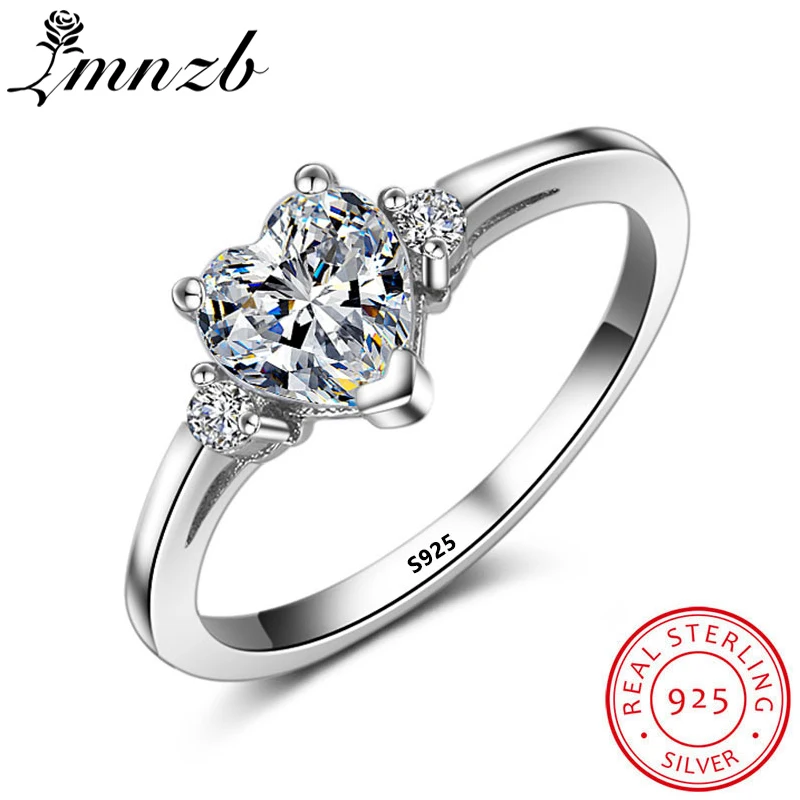 LMNZB 100% оригинальное Настоящее серебро 925 пробы сердце CZ цирконий обручальные кольца для женщин обручальные ювелирные изделия подарок JZR006