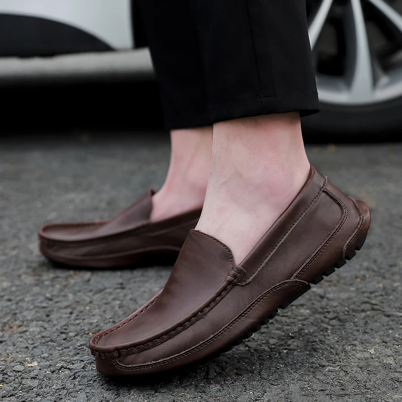 Мокасины мужские из натуральной кожи, мягкие дышащие туфли, лоферы,...