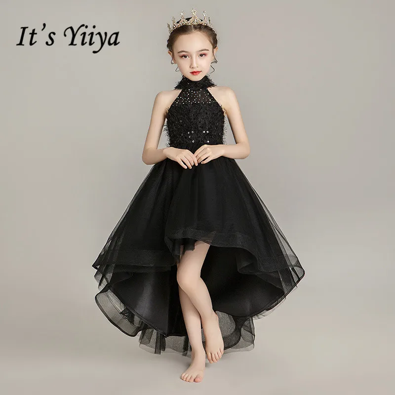 Черное платье с цветочным узором для девочек, элегантное вечернее платье It's Yiiya B094 с лямкой на шее, без рукавов, длиной до пола, 2020, Тюлевое платье принцессы для девочек
