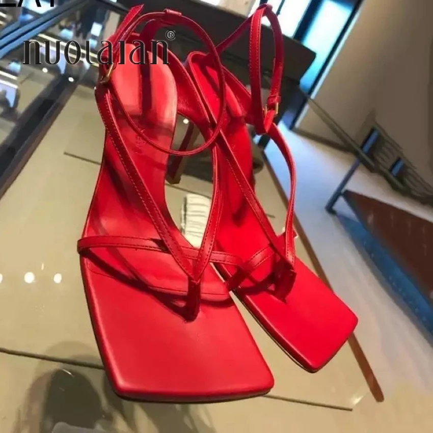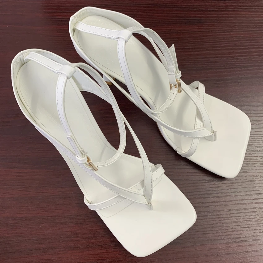 Сандалии-гладиаторы женские, на высоком каблуке, с ремешком, с пряжкой и квадратным носком