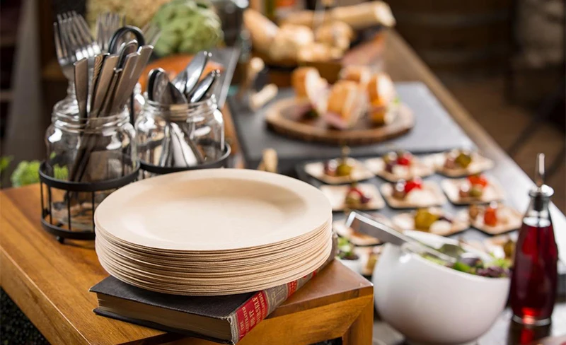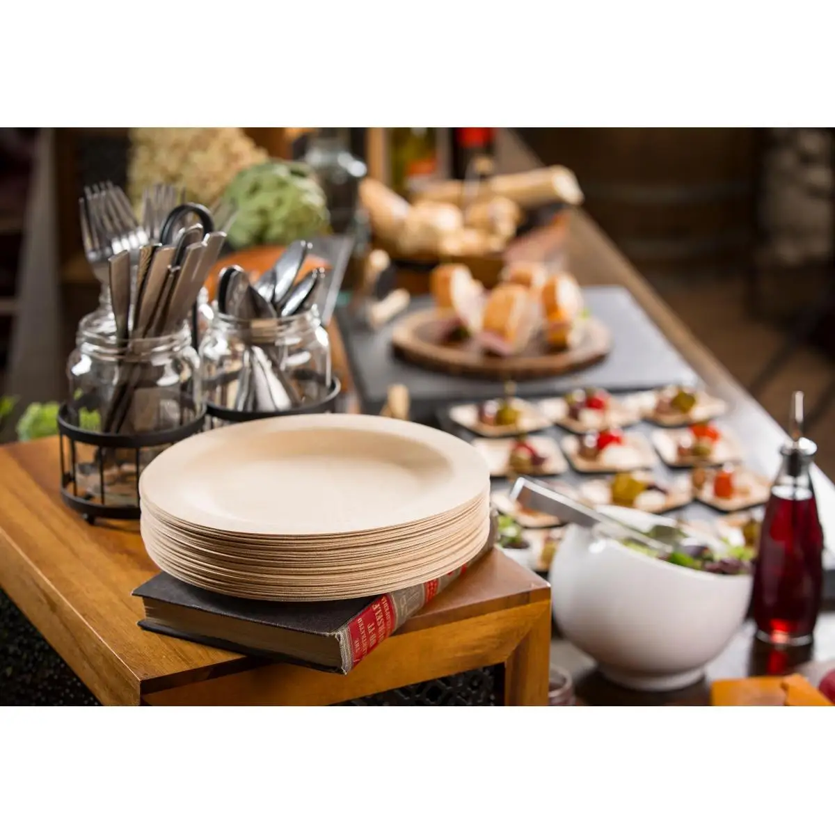 Продвижение-вечерние свадебные принадлежности Посуда одноразовые сушисалатДесерт 190 мм круглые деревянные пластины, 10 шт.упаковка