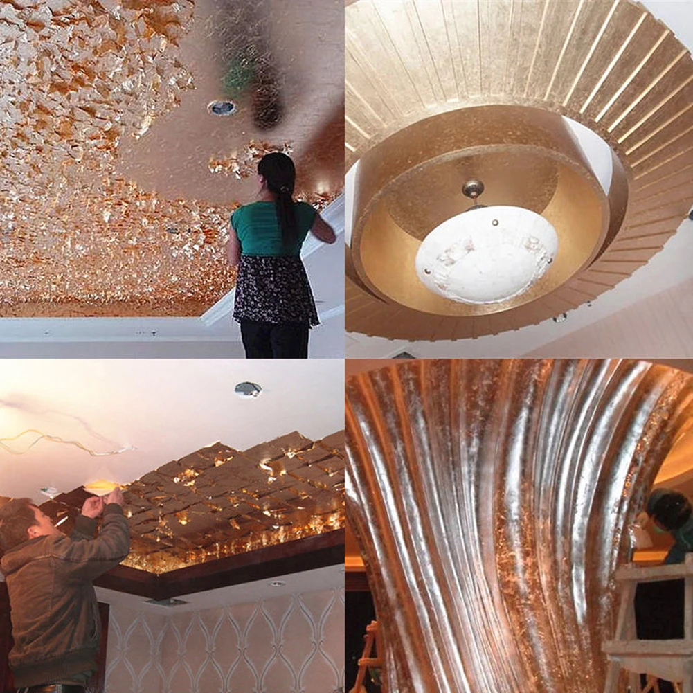 100 шт., листы золотого, Серебряного и медного листьев, листы из фольги для золочения, декора, стеклянные рамы, стены, потолки