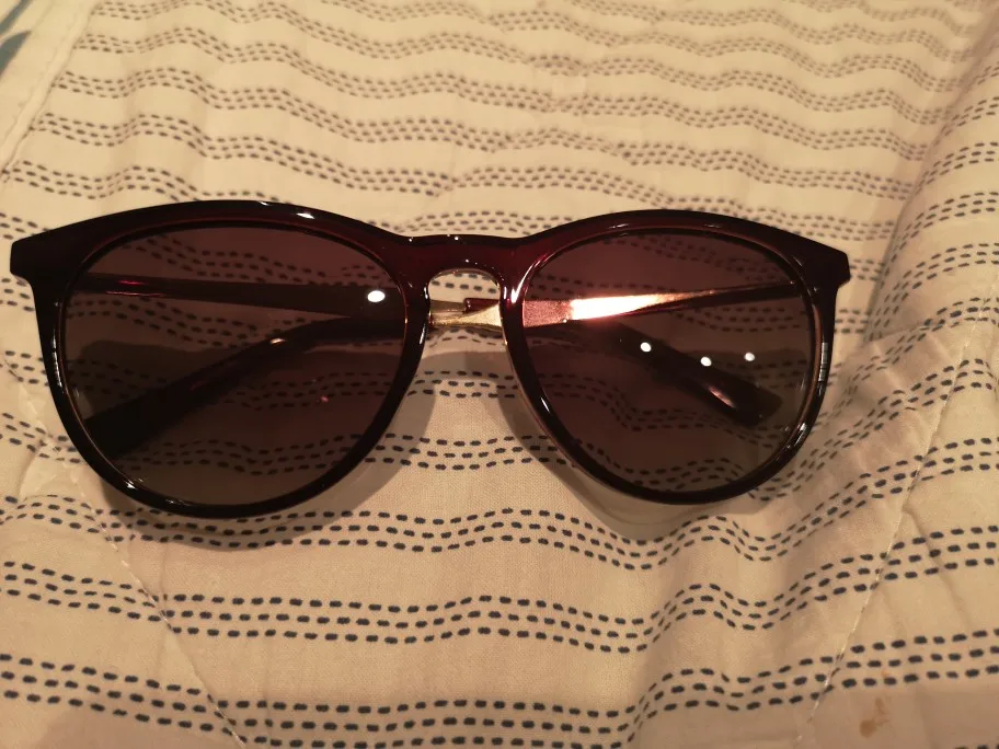 Очки как на фото. Комплект весь. Качество вроде нормальное. Поляризация по приложенному тест ок. Нет указания бренда ни на очках, ни на чехле. Доставка очень быстрая. Спасибо