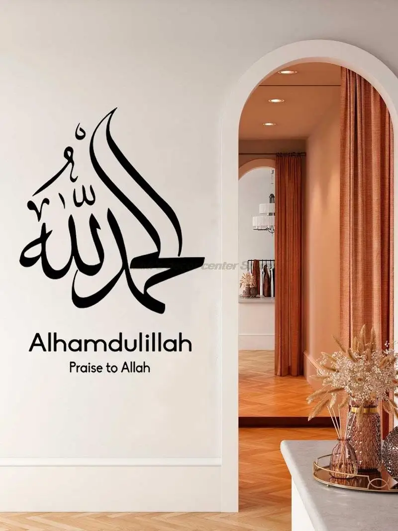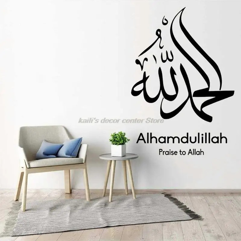 Мусульманская каллиграфия, арабский альхамдулллах, хвала алле, мусульманская виниловая наклейка на стену, мусульманское украшение для дома, художественная Настенная Наклейка 2MS49