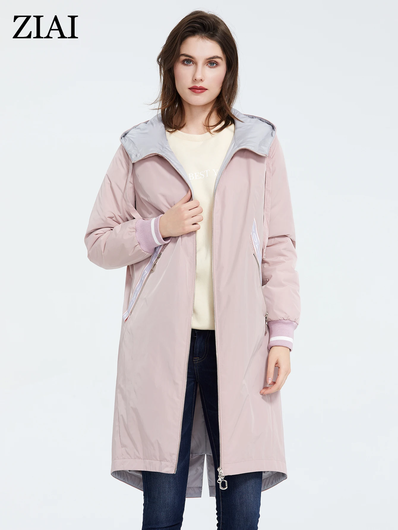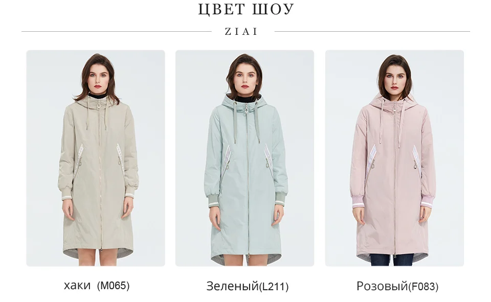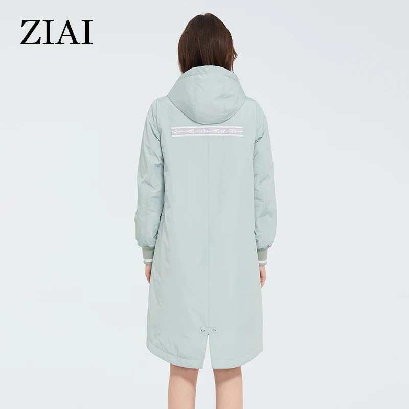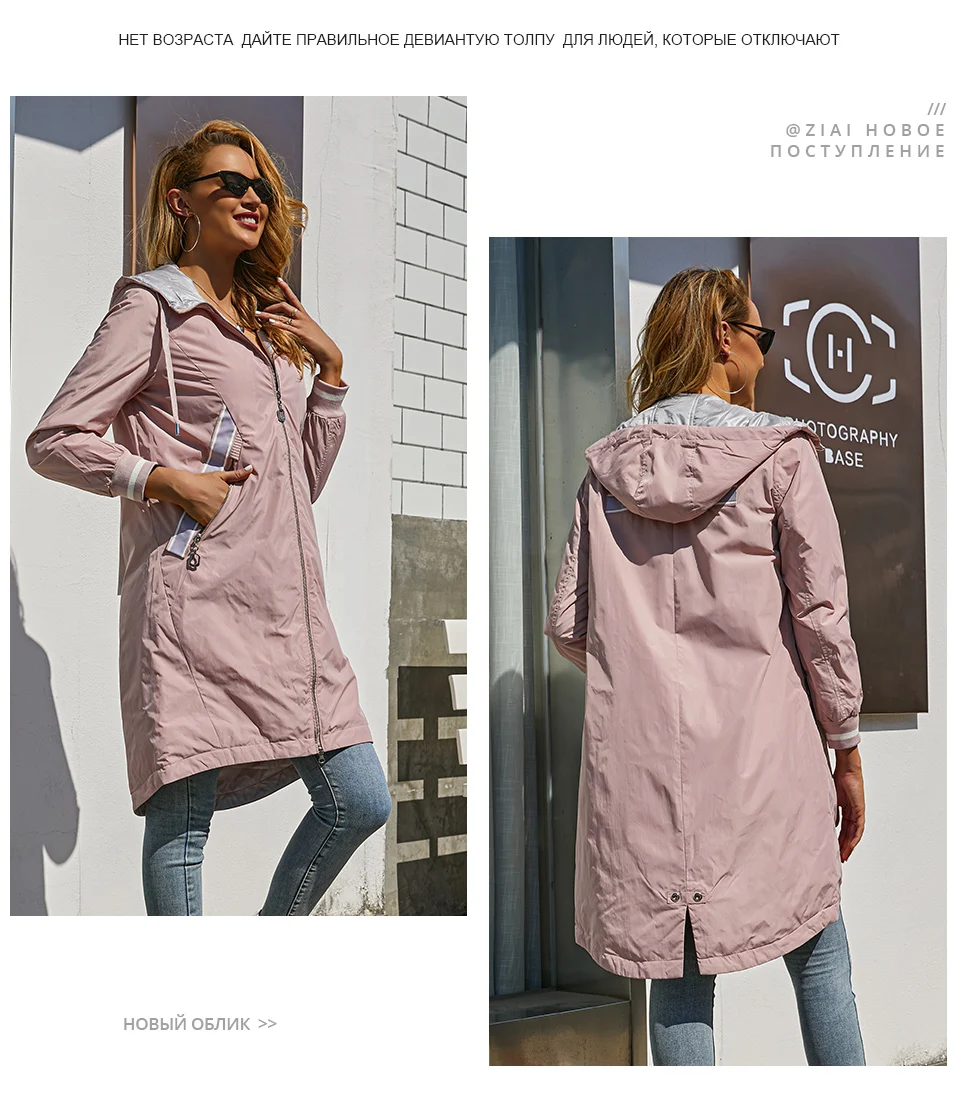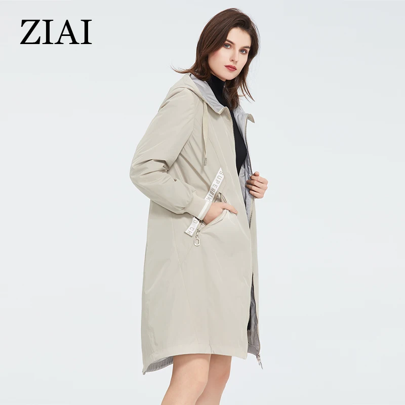 ZIAI 2021 весенний длинный женский плащ светло-розовый ветрозащитный тонкий хлопок с капюшоном куртка женская теплая повседневная ветровка ZM-3556