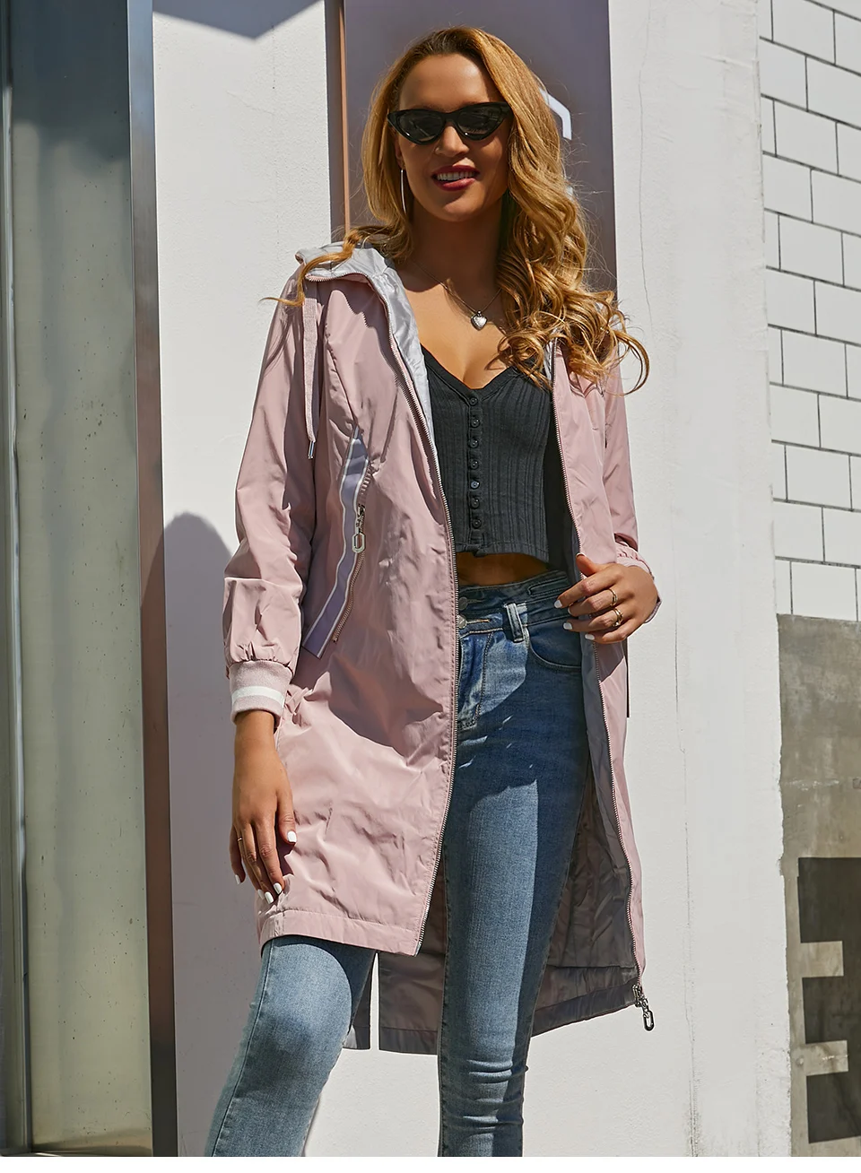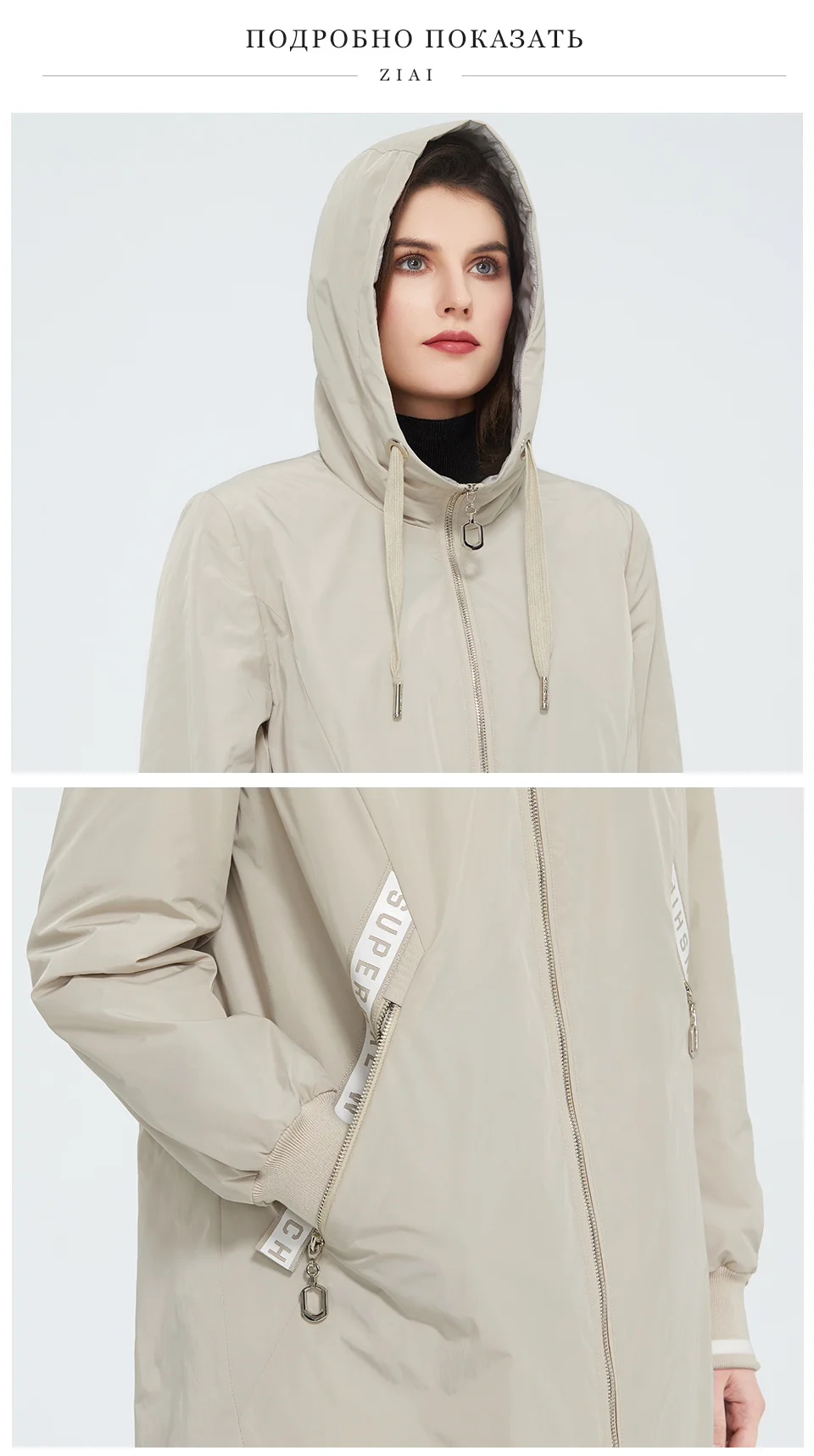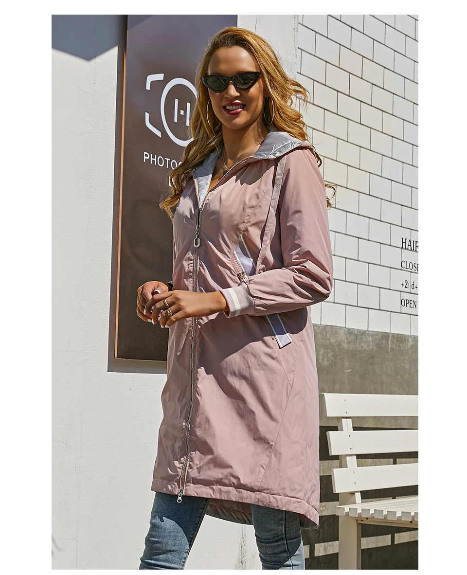 ZIAI 2021 весенний длинный женский плащ светло-розовый ветрозащитный тонкий хлопок с капюшоном куртка женская теплая повседневная ветровка ZM-3556