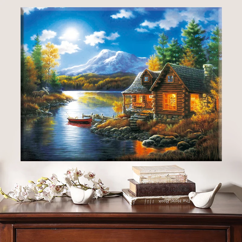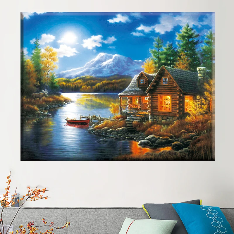 Алмазная 5D картина сделай сам, вышивка крестиком, картина с изображением дома, природы, пейзажа, полные стразы, 40x50 см, вышивка, домашний декор