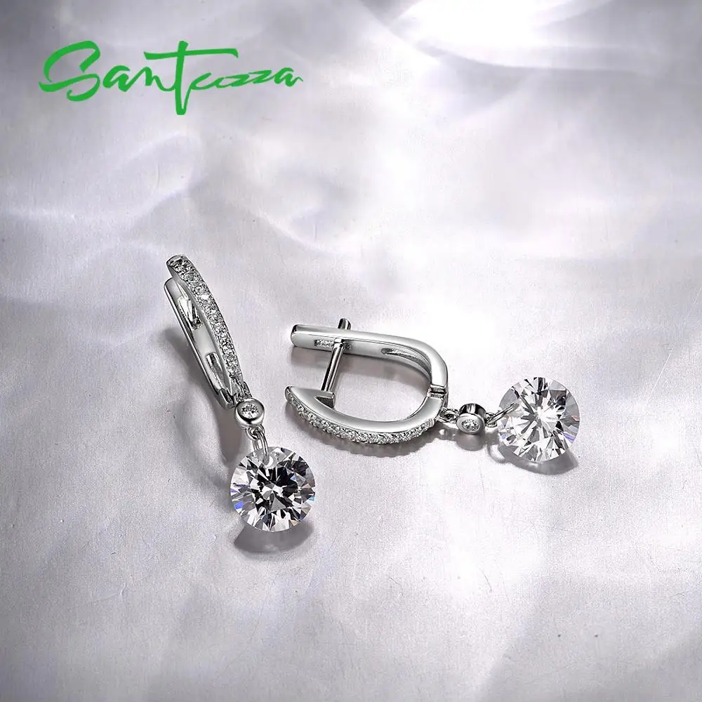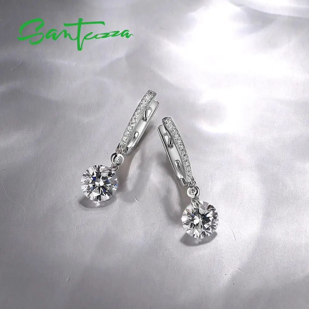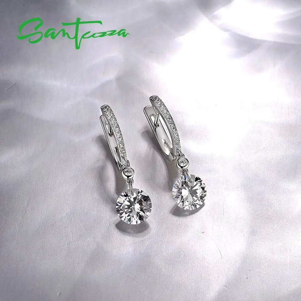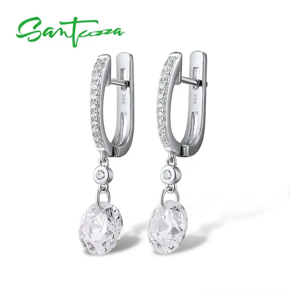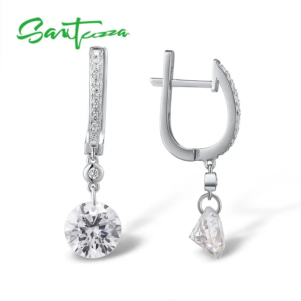Женские серебряные сережки SANTUZZA, из серебра 925 пробы, со сверкающим белым кубическим цирконием, ювелирные украшения из драгоценных камней