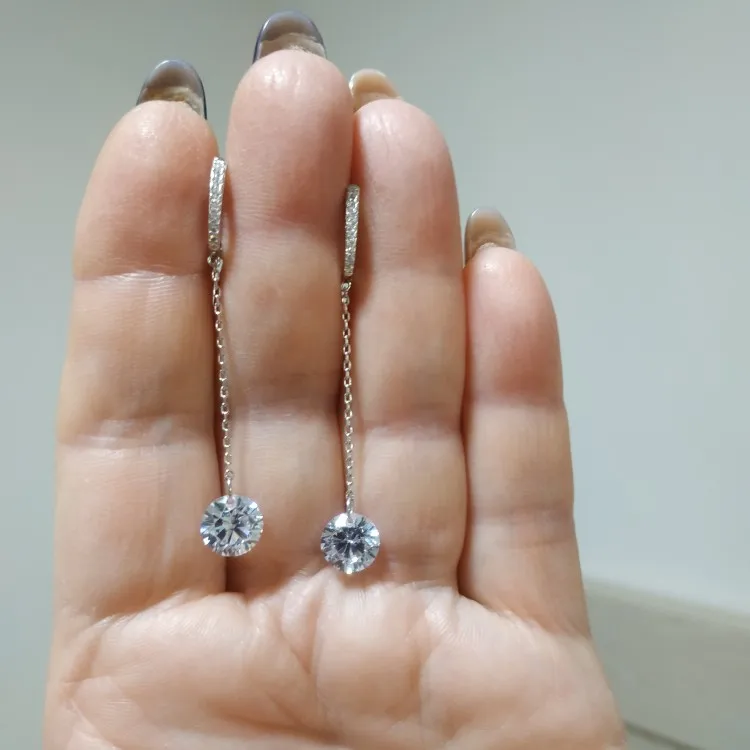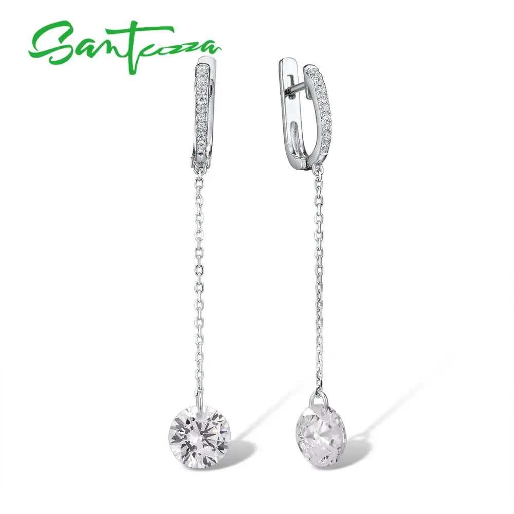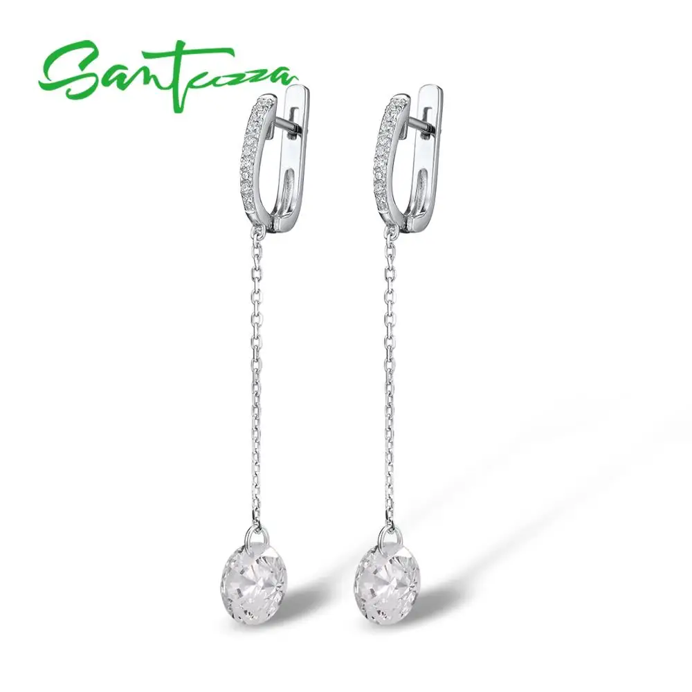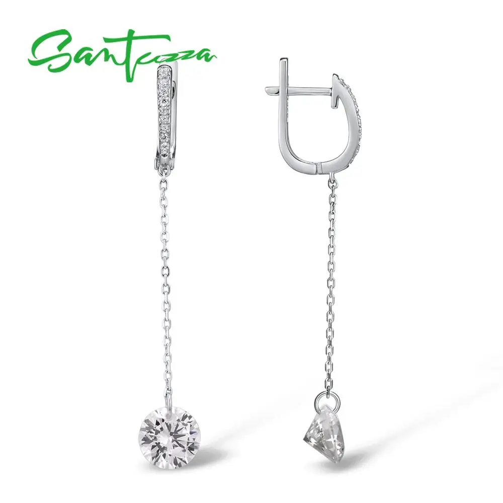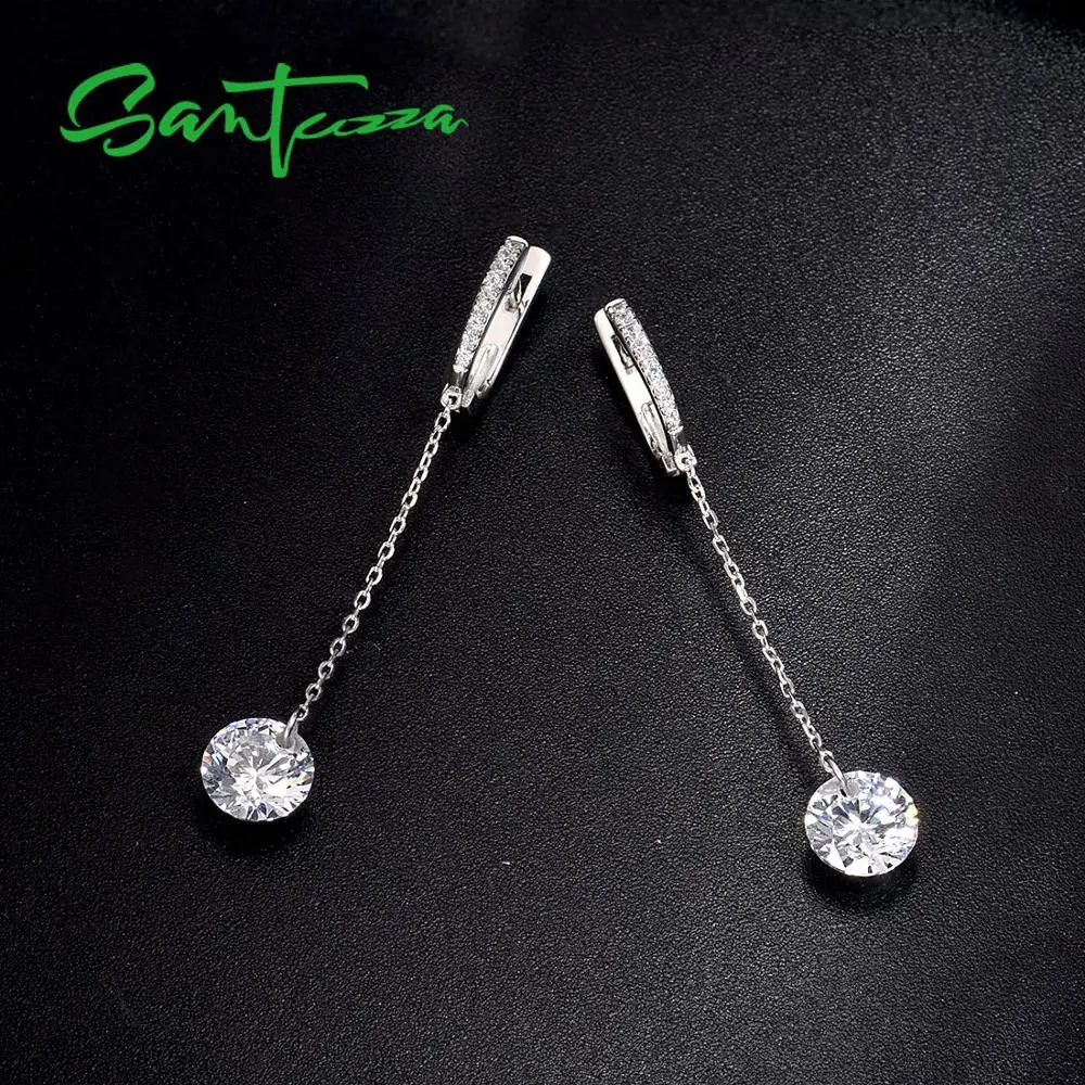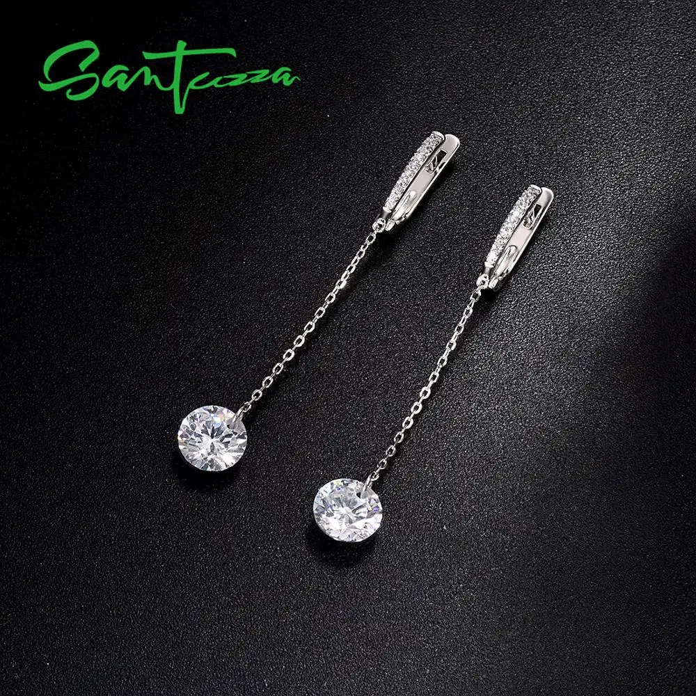 Женские серебряные сережки SANTUZZA, из серебра 925 пробы, с белыми кубиками циркония, длинные, элегантные ювелирные украшения из драгоценных камней