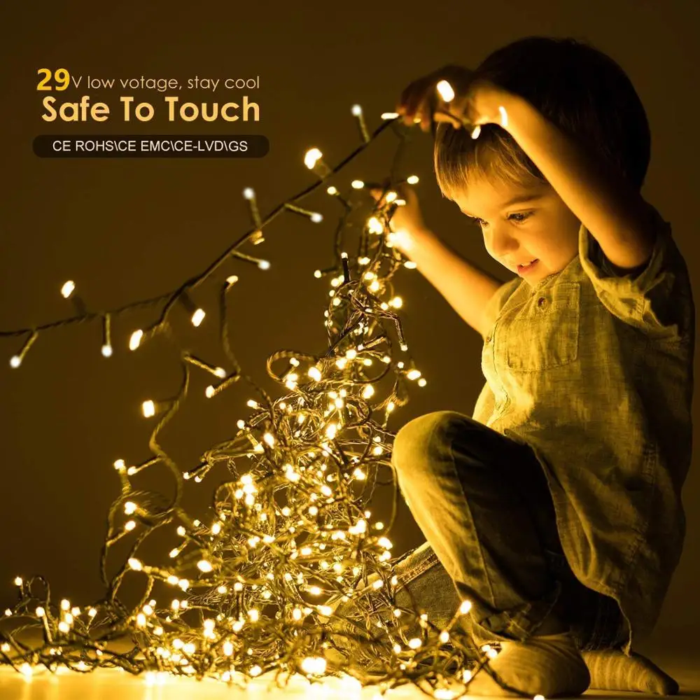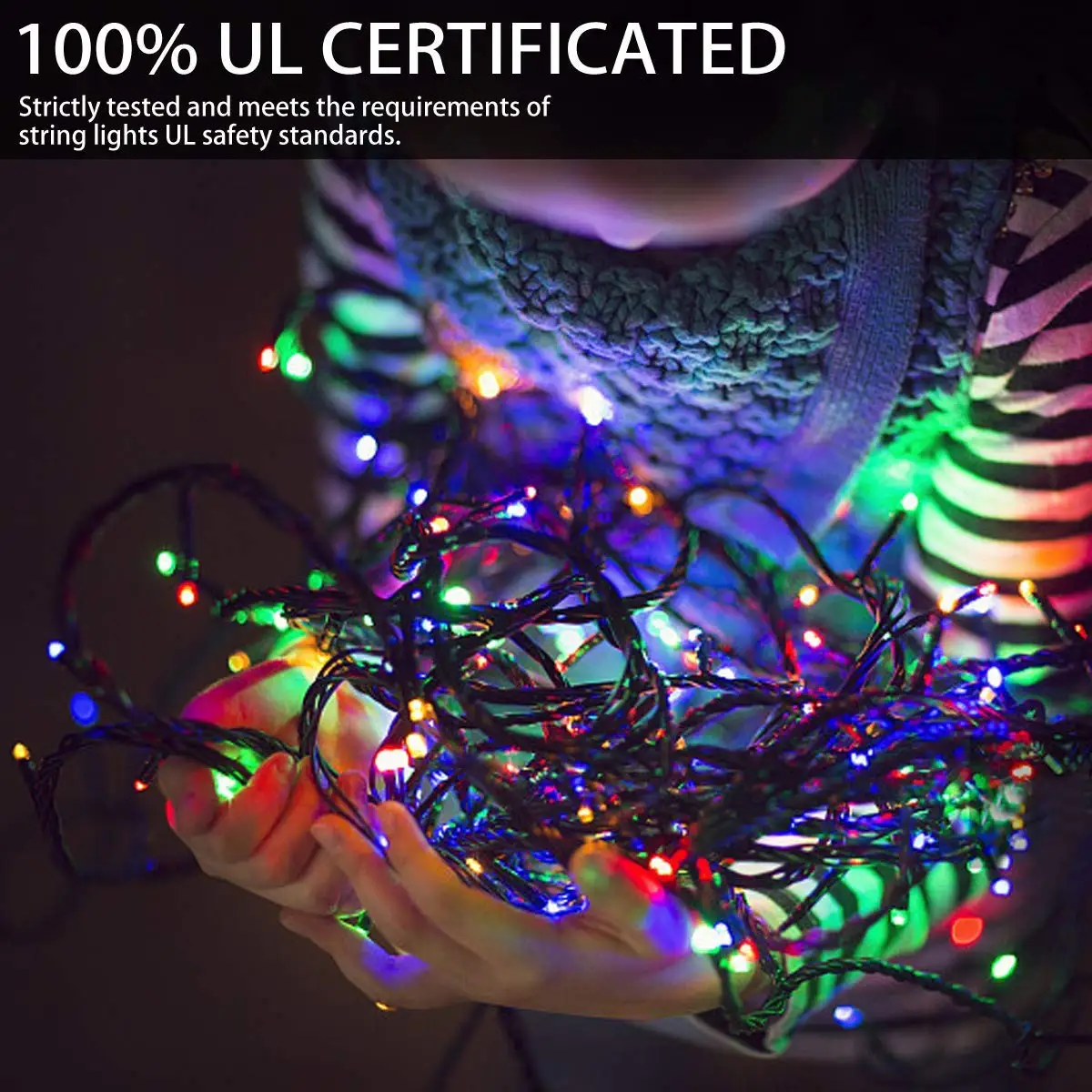 Уличная Рождественская гирлянда, 10 м, 20 м, 30 м, 50 м, 100 м, 24 В, 8 режимов, водонепроницаемая, сертифицированная компанией Underwriters Laboratories (4 подключаемых комплекта), светодиодная, праздничная