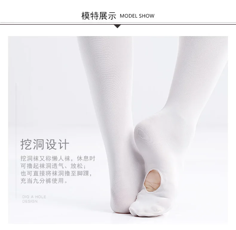 100D детские танцевальные колготки с дырками для балета, белые тренировочные тонкие летние профессиональные впитывающие пот колготки для девочек ростом 90-150 см