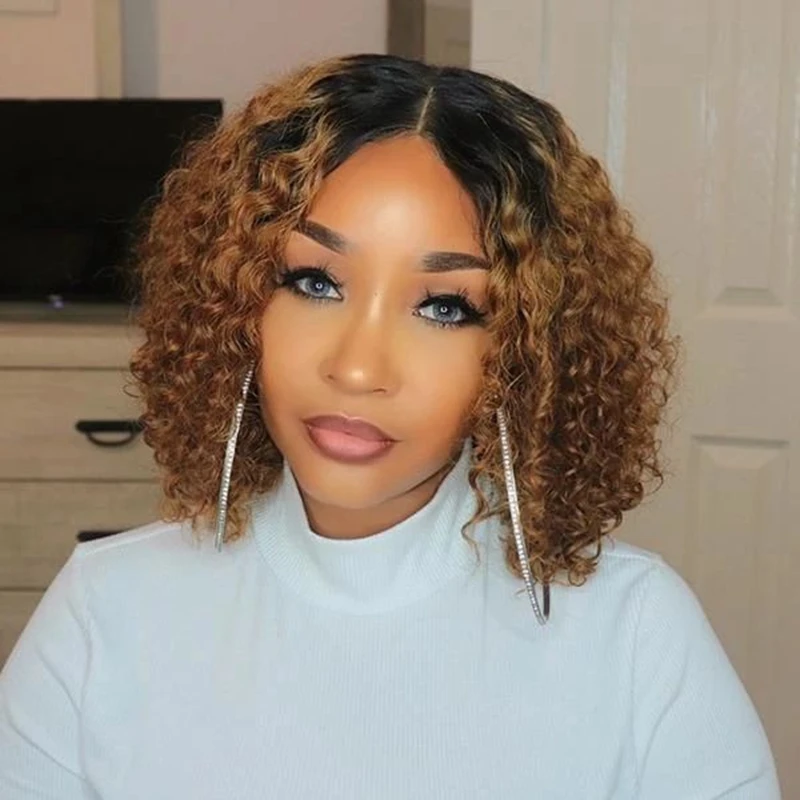 Короткий кудрявый парик имбирного, оранжевого цвета, парик из человеческих волос на шнуровке спереди, с детскими волосами, бразильский, медовый, светлый, Боб, парик для чернокожих женщин