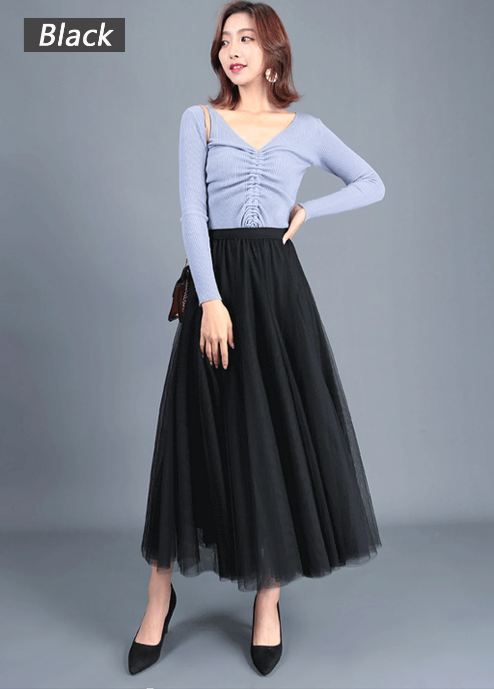 Красивая двухслойная длинная юбка из тюля WF0043, черные, розовые, ...