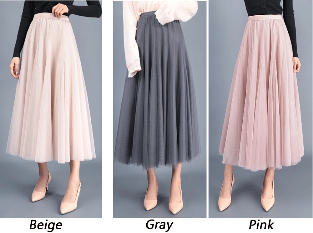 Женская длинная юбка, элегантная юбка макси из тюля, серого, коричн...