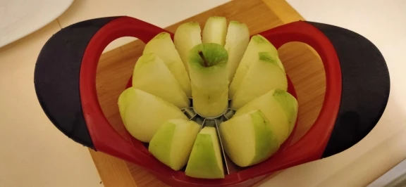 Как в описании. Очень хорошо сделано с точки зрения цены. Упаковка также была продуманной, поэтому товар прибыл неповрежденным. Изделие достаточно острое, но вы должны надавить, чтобы разрезать все яблоко сразу. Но при резке-это делает мелкие ломтики и легко отделяет сердцевину. В Литву в течение 48 дней. Рекомендовано.