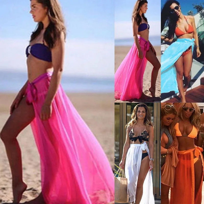 Новые женские шифоновые купальники, накидка на бикини, Пляжная макси юбка с запахом, саронг парео, платье