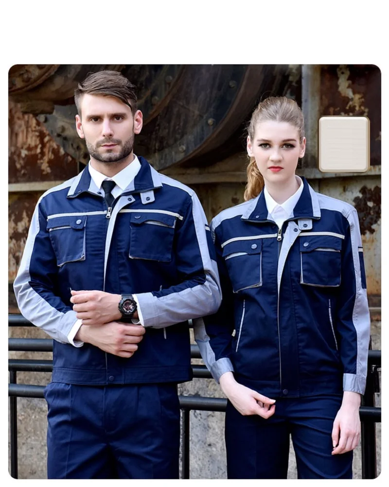 Размера плюс осенний сварочный костюм, износостойкая Рабочая Светоотражающая полоса, утолщенная мастерская, авторемонт, инженерные комбинезоны, мужские и женские Рабочие комбинезоны, костюм размера плюс, куртка + брюки, Лоскутная рабочая одежда, мастерская, Сварочная шлифовальная краска, ремонт автомобилей