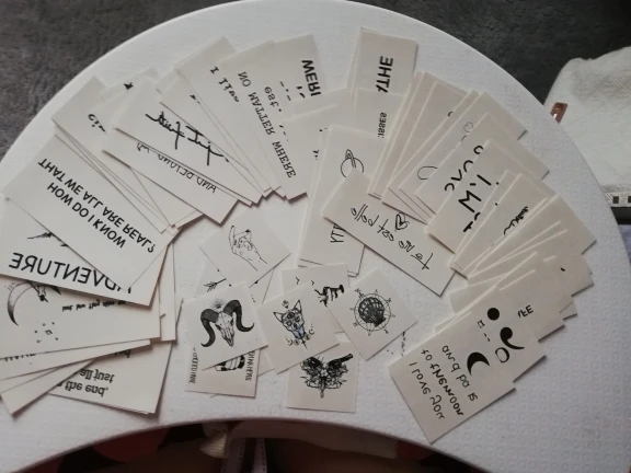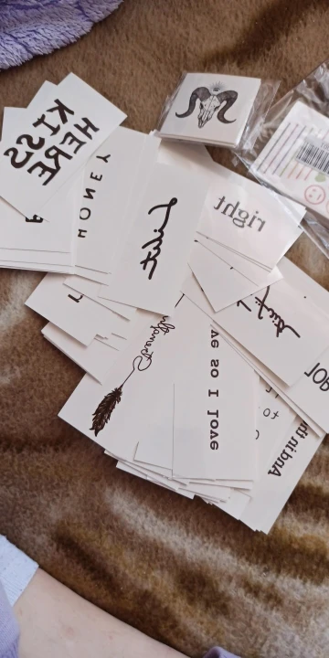 Норм наклейки, уже попробовала парочку. Держатся не очень долго, но это ещё зависит от места куда прикрепили В целом, дизайном татуировок я довольна всё миленько. Есть одна тату на русском, кайф