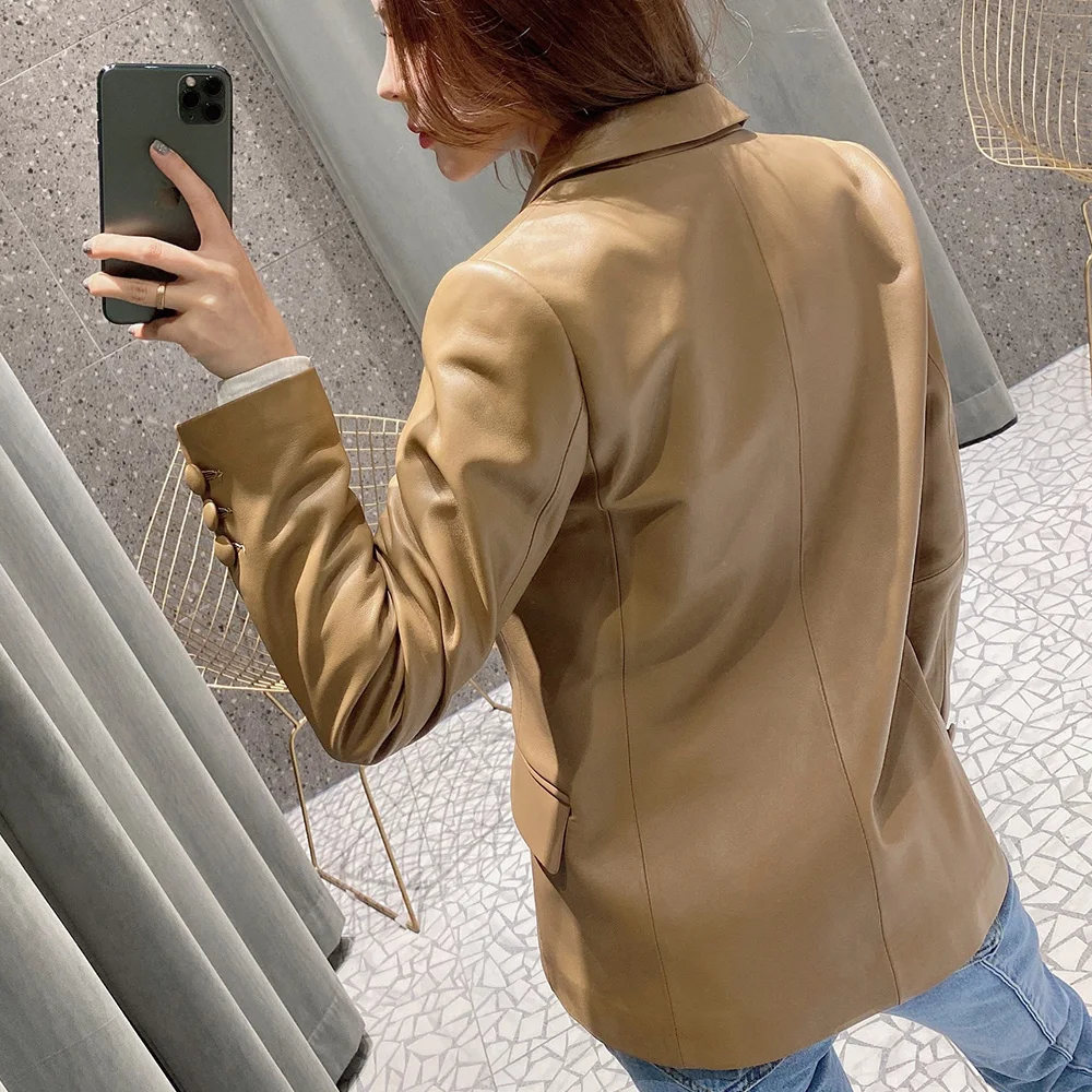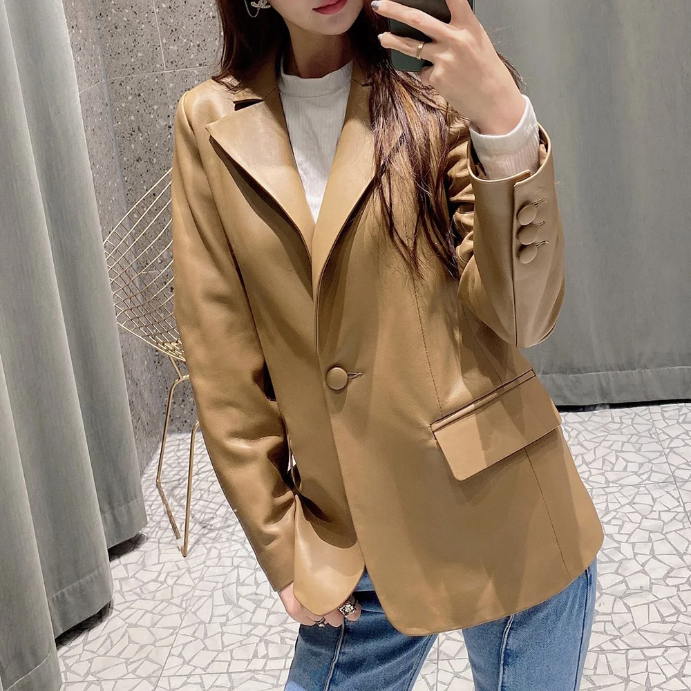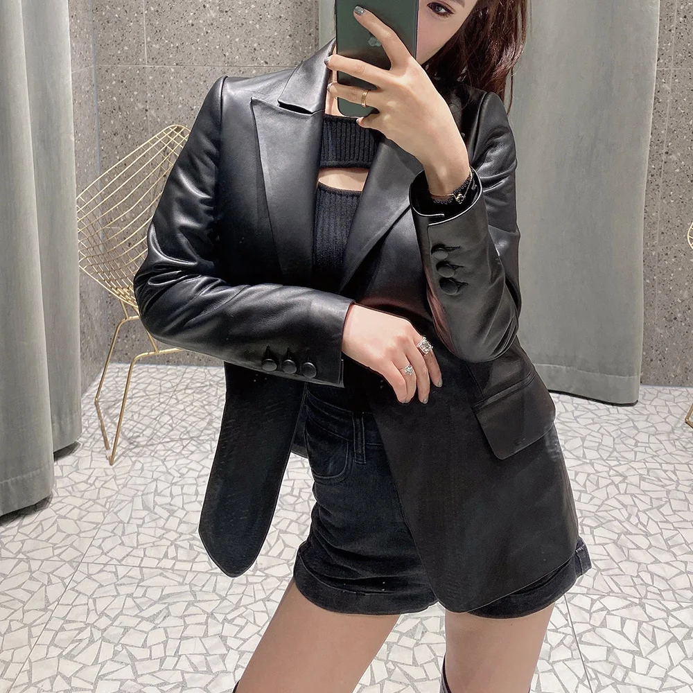 Модная женская куртка из натуральной овечьей кожи, весна-осень, кожаные пальто для женщин, новинка 2021, S9076B
