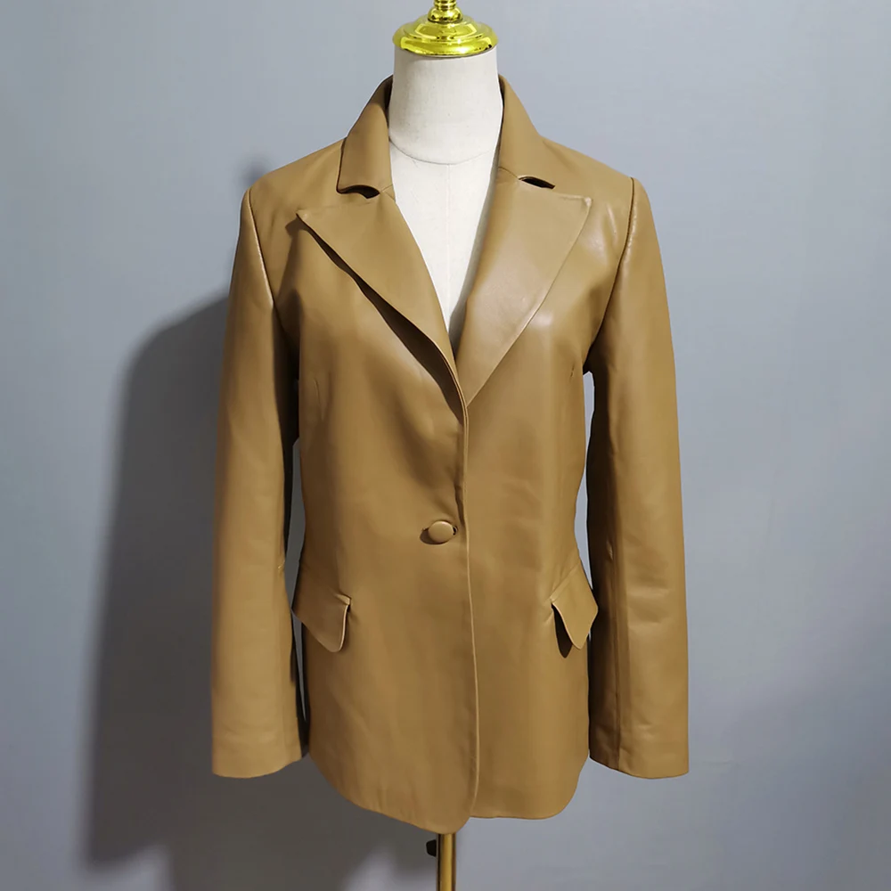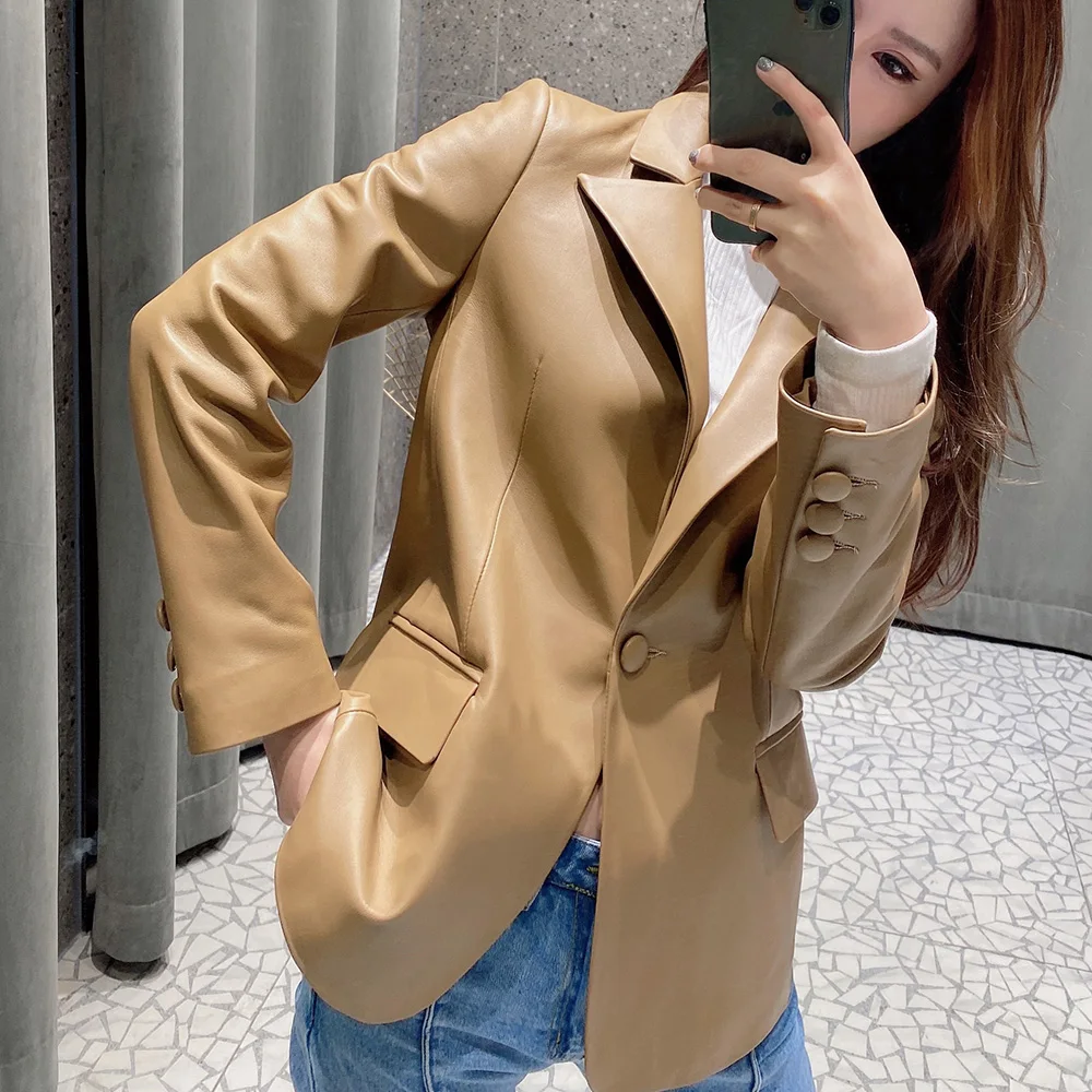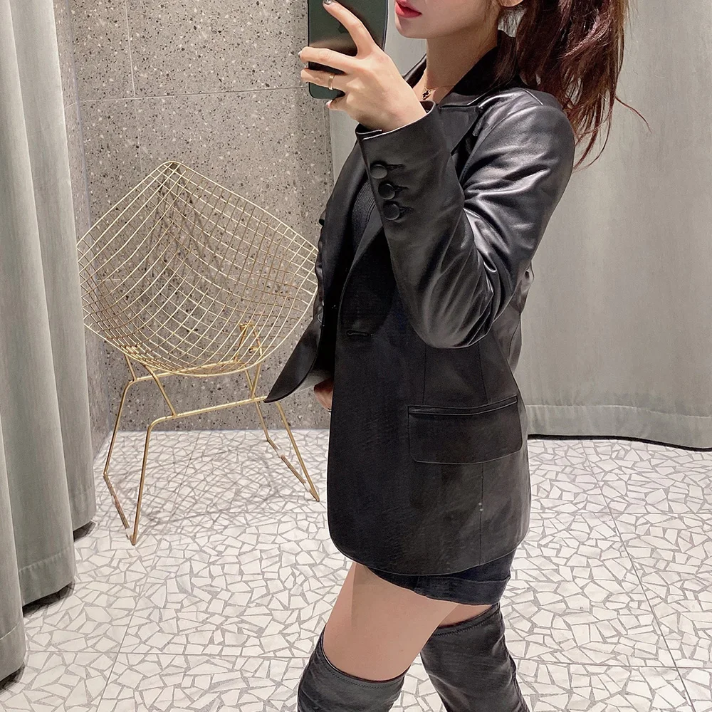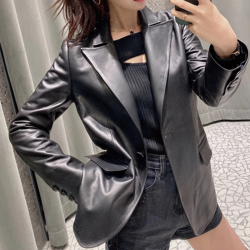 Модная женская куртка из натуральной овечьей кожи, весна-осень, кожаные пальто для женщин, новинка 2021, S9076B