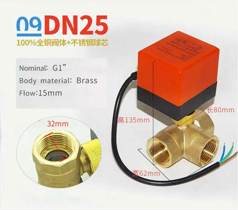 Шаровой кран с электроприводом DN152025, 3 канала, трехканальный электрический контроль, двусторонний, 220 В переменного тока, инструмент LSD, подключающий диск, латунный шаровой кран