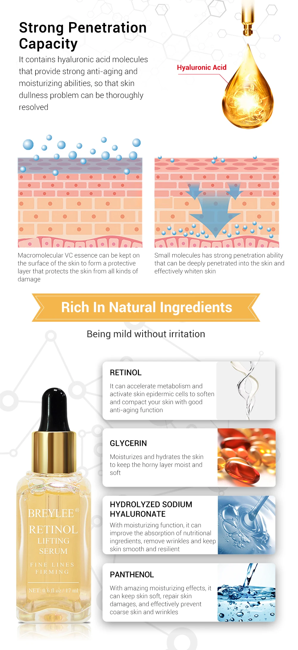 Подтягивающая Сыворотка для лица BREYLEE 3 шт., коллагеновая эссенция для лифтинга и удаления морщин, антивозрастной уход за кожей лица