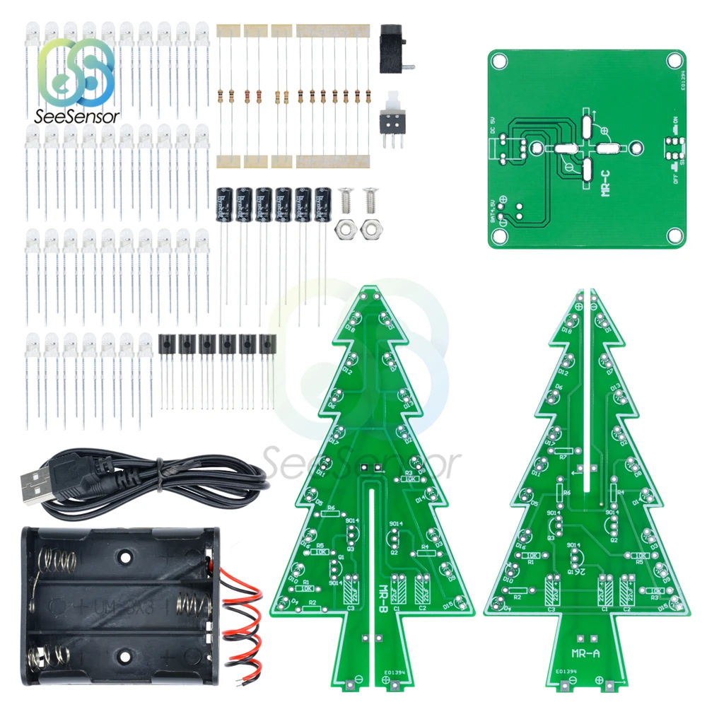 1 xТрехмерный 3D светодиодный комплект для рождественской елки DIY красный/зеленый/желтый RGB светодиодный комплект для вспышки, электронный набор для развлечения, праздничный Декор, подарки