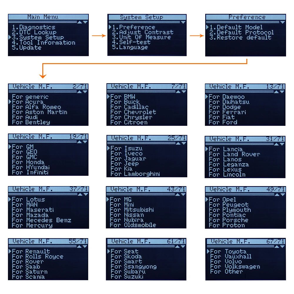 Поддерживает большое количество автомобилей, произведенных 70 производителями.