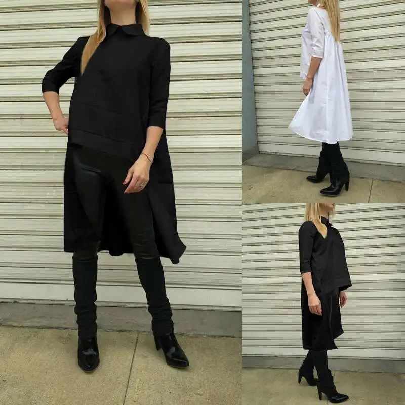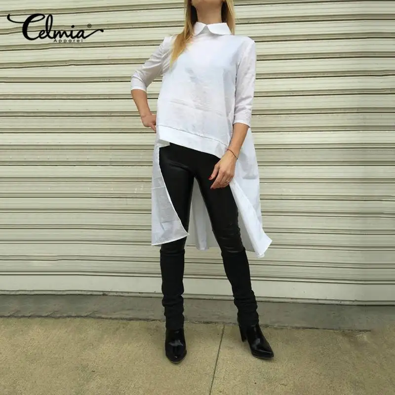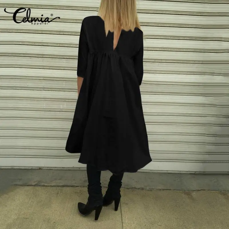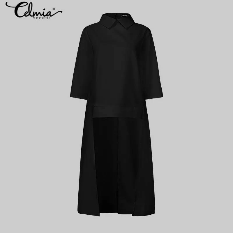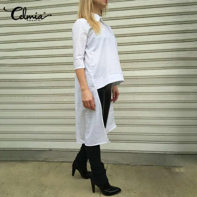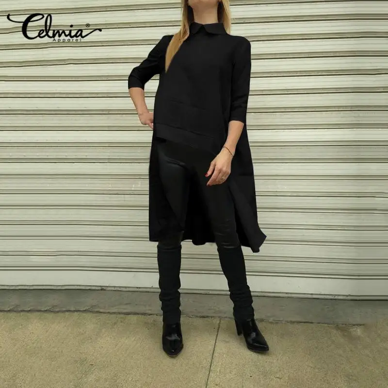 Женская длинная рубашка Celmia, Повседневная Свободная однотонная блузка в стиле ретро с рукавом 34 и отложным воротником, для осени, 2020