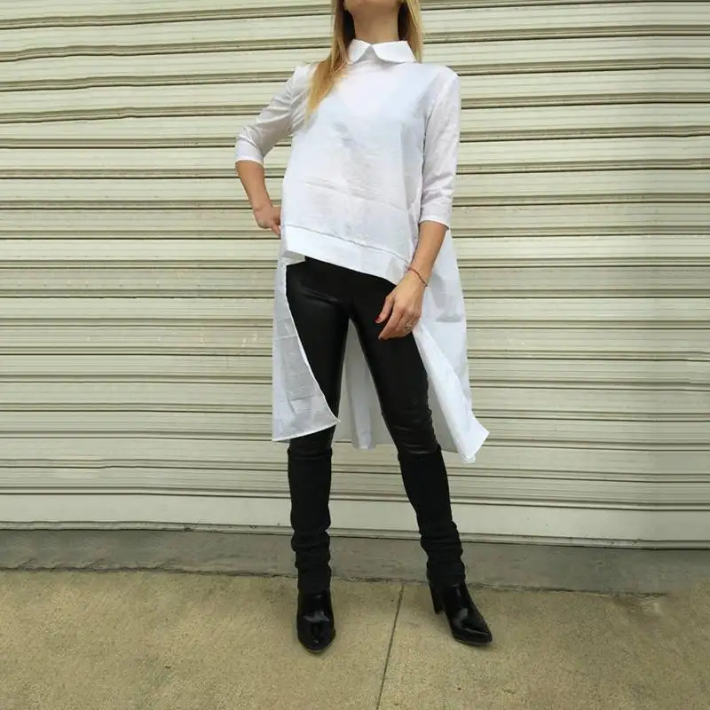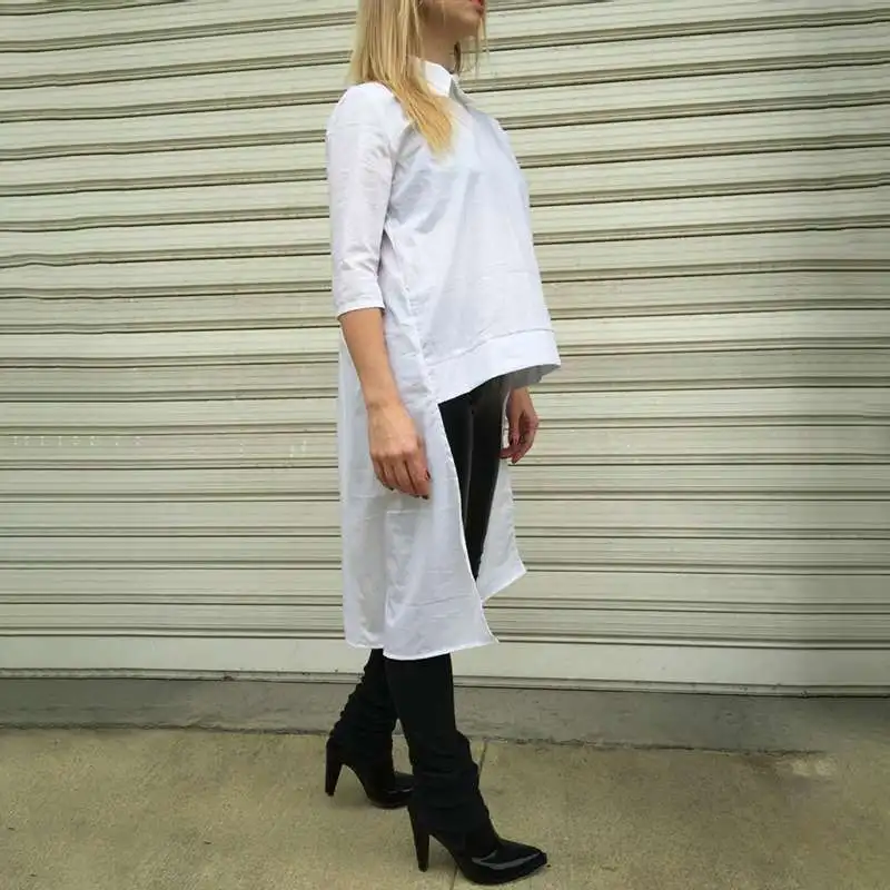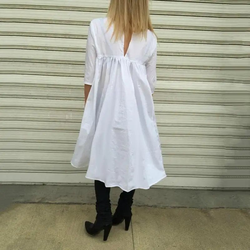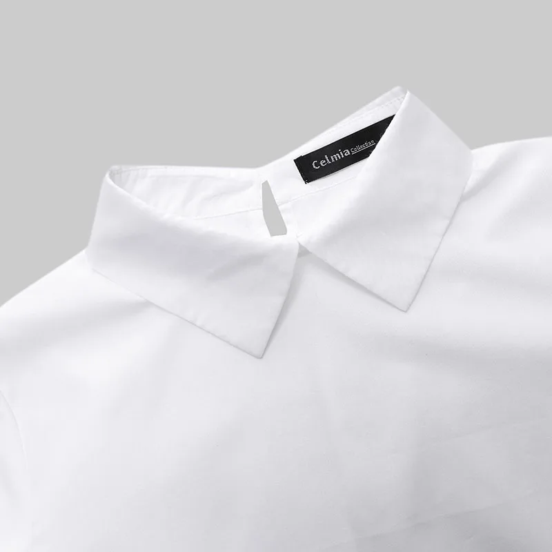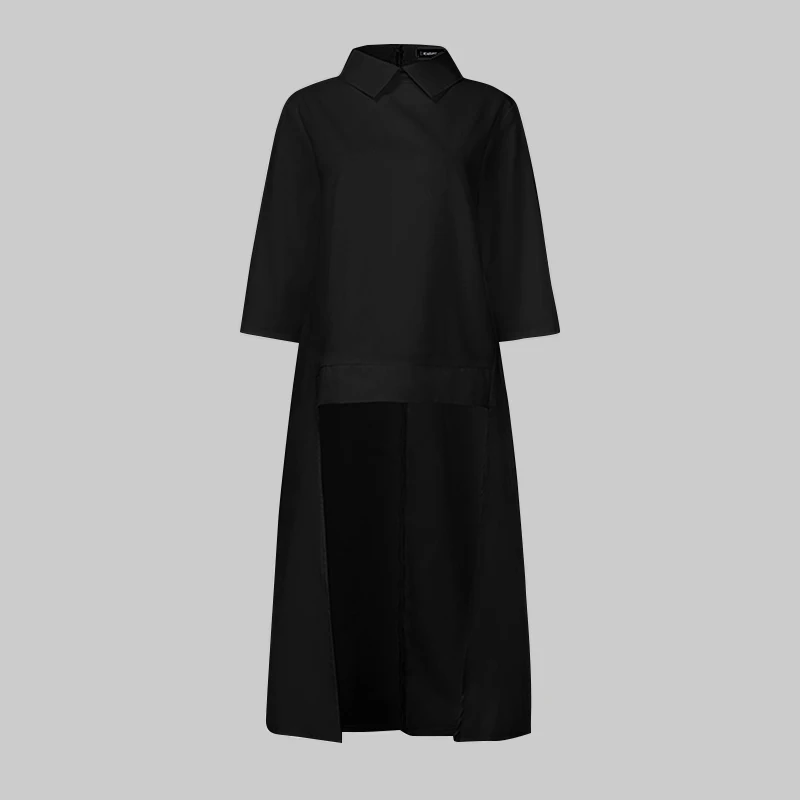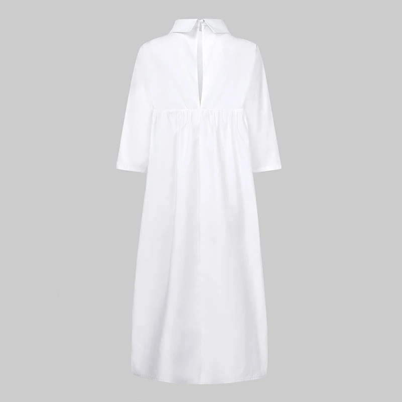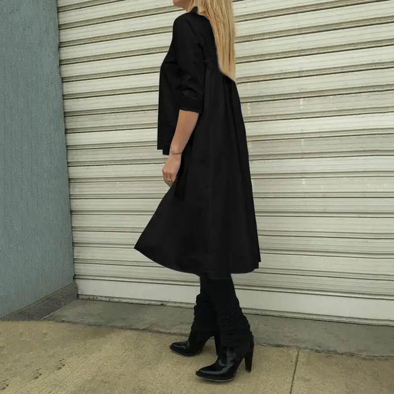 Женская длинная рубашка Celmia, Повседневная Свободная однотонная блузка в стиле ретро с рукавом 34 и отложным воротником, для осени, 2020