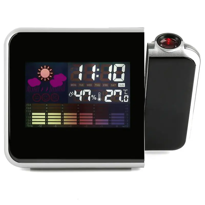 Будильник с функцией проекции и метеостанцией, цифровые часы с термометром, индикацией даты, USB-зарядкой, повтором сигнала, цветным ЖК-дисплеем