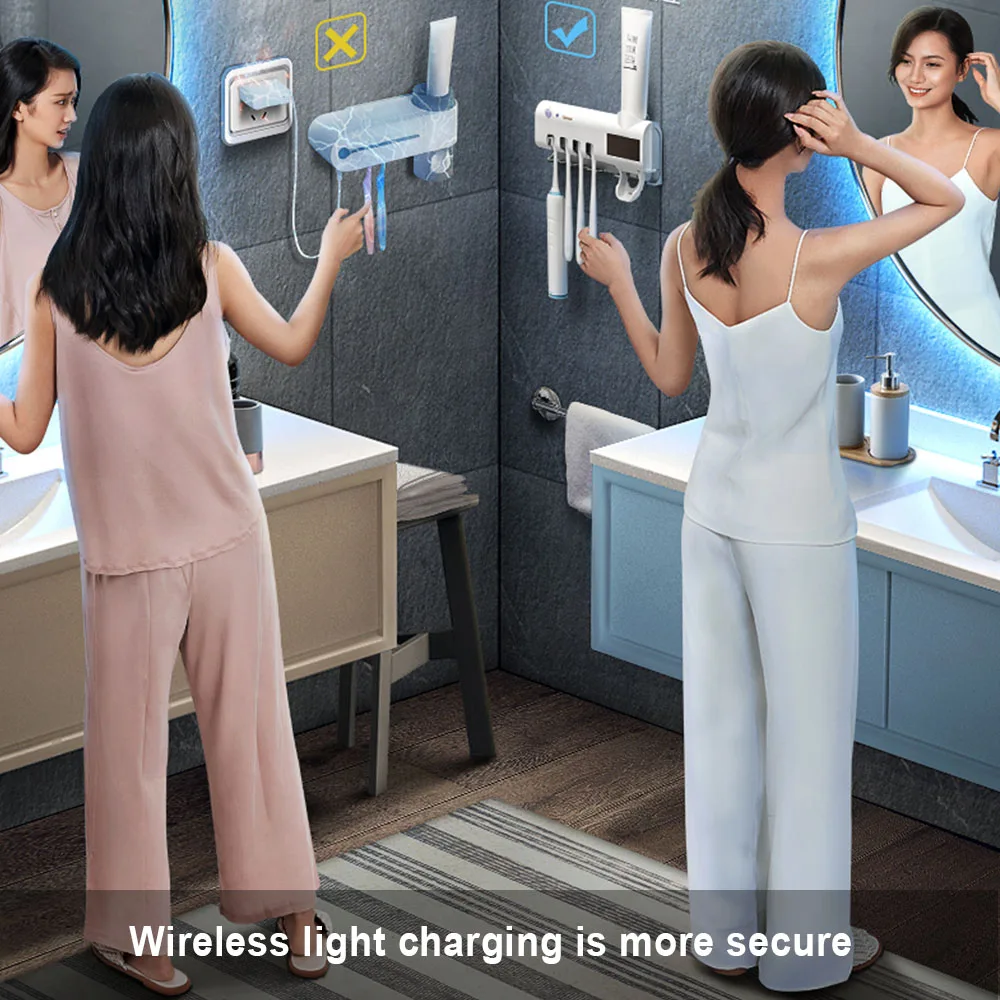 Половина оральных проблем связана с вашей зубной щеткой. Этот стерилизатор для зубных щеток обеспечит вам лучшее качество жизни. Беспроводная Конструкция: Нет необходимости пробивать отверстия, простая установка пасты, нет розеток для использования, вы также можете установить его в любом месте и наслаждаться чистой и упорядоченной ванной комнатой. Двойная эффективная Стерилизация: UVC и фотокатализатор двойная стерилизация, уровень стерилизации достигает 99.99%. Интеллектуальная инфракрасная цифровая индукция: система стерилизации может быть активирована более точной и чувствительной индукцией человеческого тела. Когда пользователь приближается, фотокатализатор начинает стерилизоваться; Когда пользователь уходит, ультрафиолетовые лучи начинают стерилизоваться. Эта конструкция может эффективно избежать вреда для пользователя. Вызванные ультрафиолетовыми лучами, беременные женщины и дети могут использовать его с уверенностью. Удобная зарядка: аморфные кремниевые тонкопленочные солнечные панели с большими золотыми линиями и большой емкостью 2600ма литий-ионные батареи могут эффективно заряжаться под любой светильник (включая крытый светильник и естественный светильник). USB можно заряжать в течение 6 часов, а светильник можно хранить в течение 100 дней. Функция дозатора зубной пасты: Встроенный адаптер зубной пасты, подушка безопасности из пищевого силикона, безопасный и экологически чистый. Подходит для зубной пасты любого размера, фиксирующая конструкция отверстия на прессе помогает пользователям легко получить правильную зубную пасту.