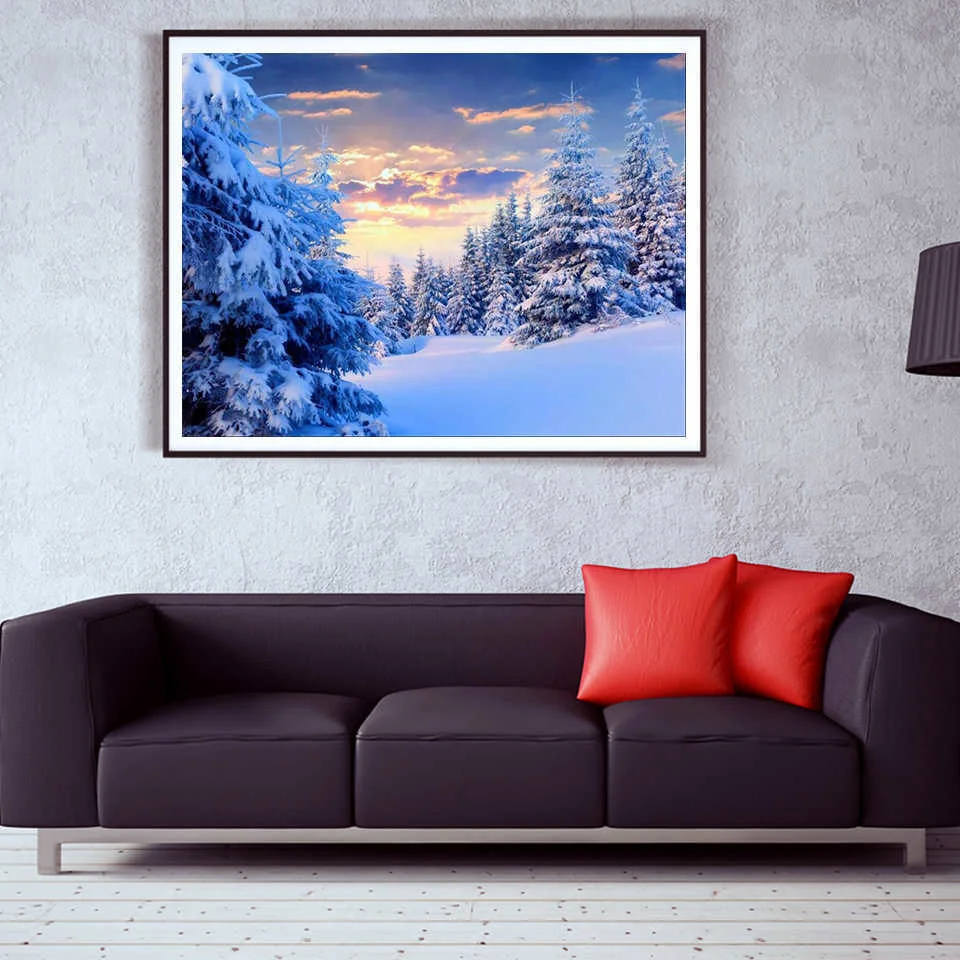 Раскраска по номерам для взрослых, без рамы, зимний пейзаж