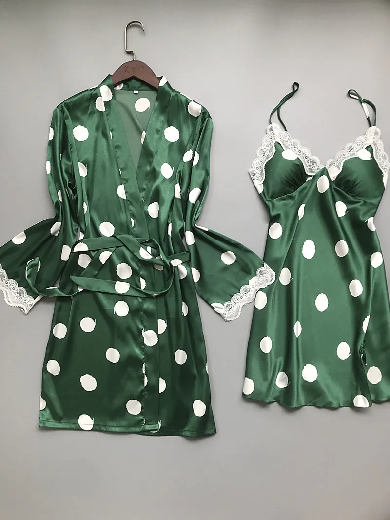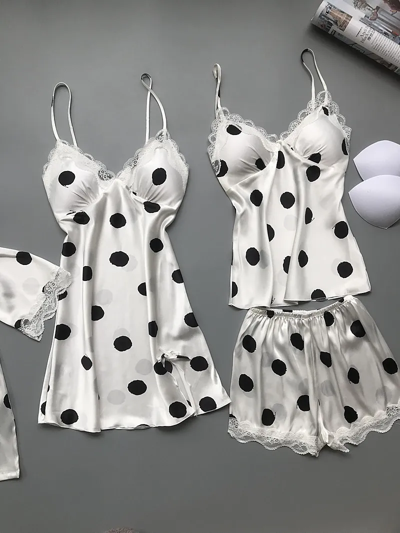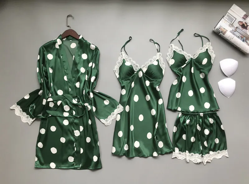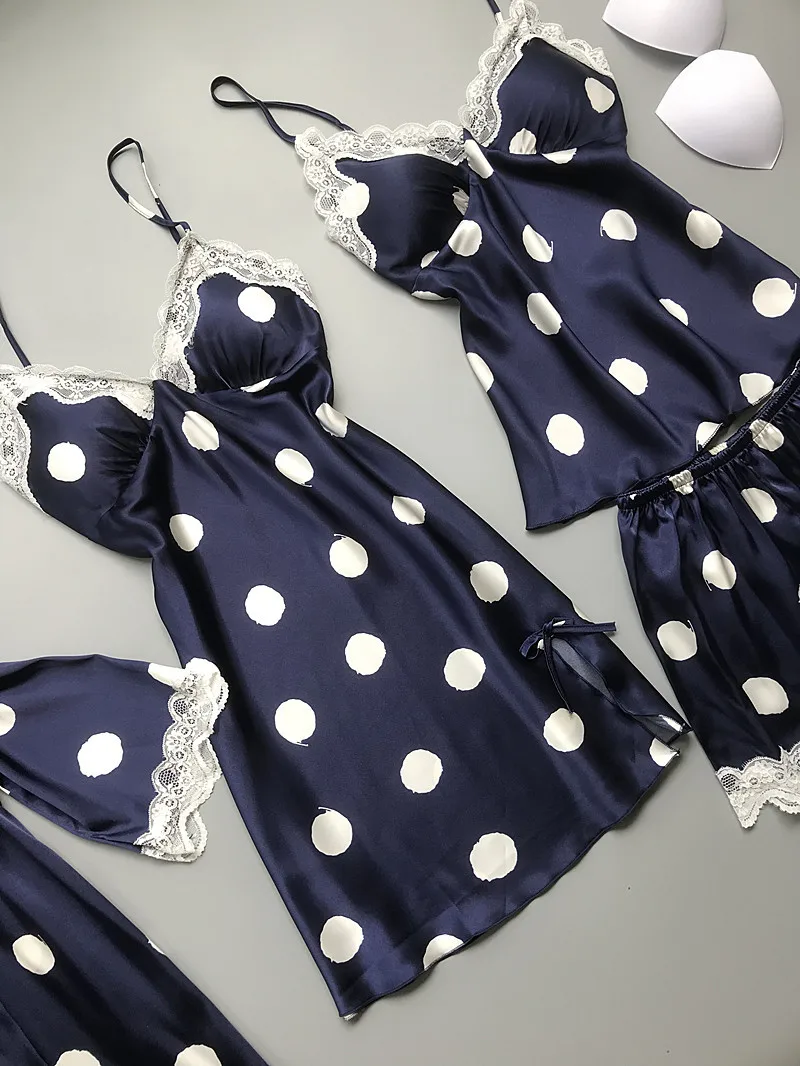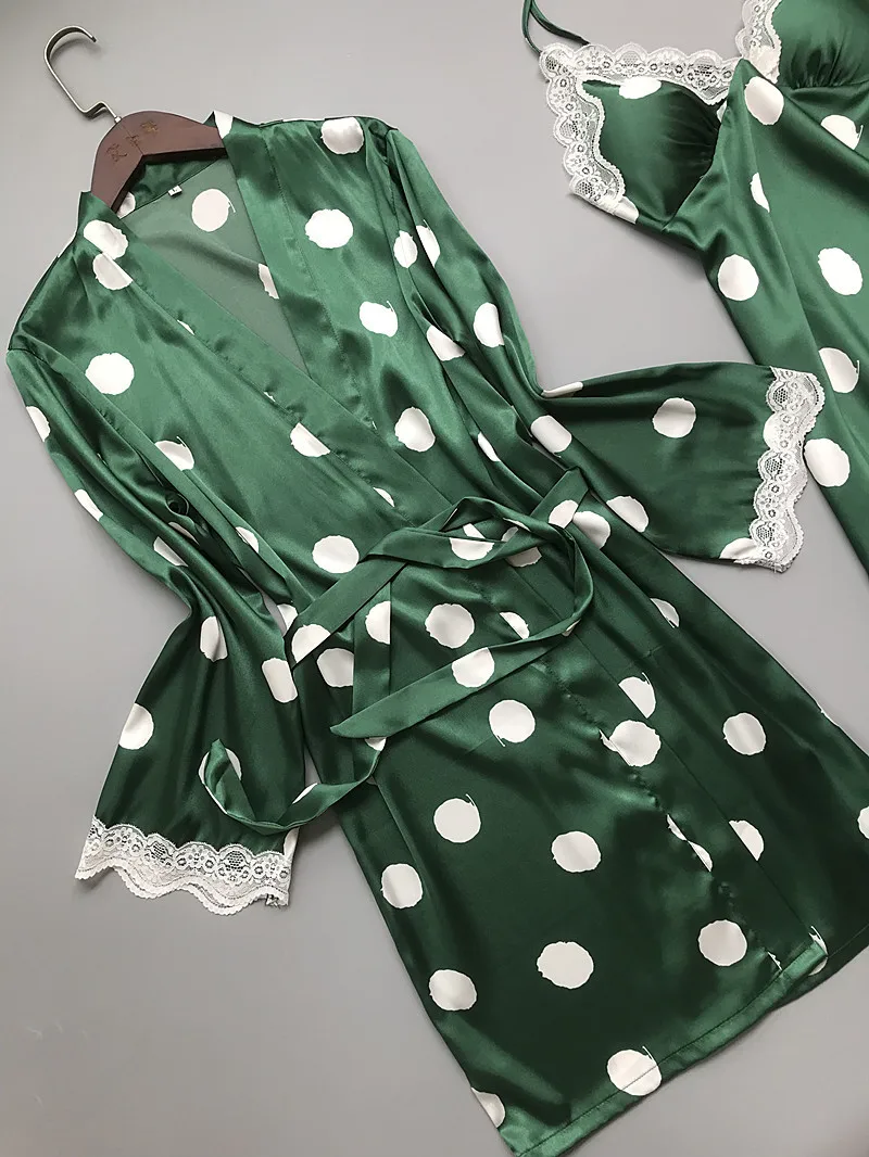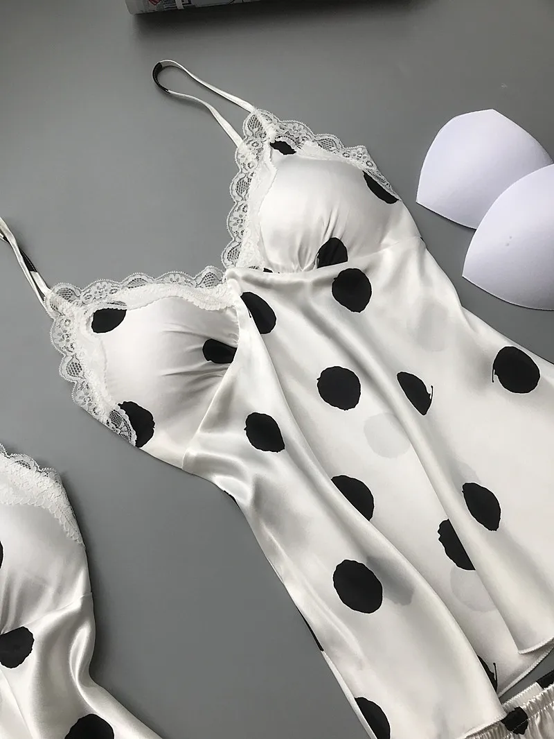 Шелковые пижамы в горошек JRMISSLI, пижамные комплекты из 3 предмет...