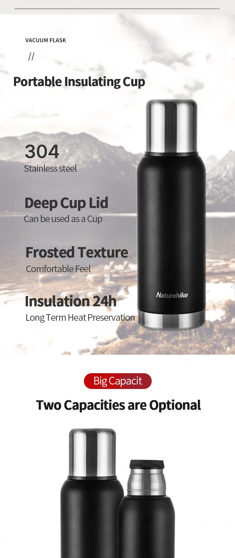 Naturehike большая емкость бутылки для воды 750-1000 мл теплый горшок для воды 24H открытый контейнер для воды с портативной изоляционной чашкой
