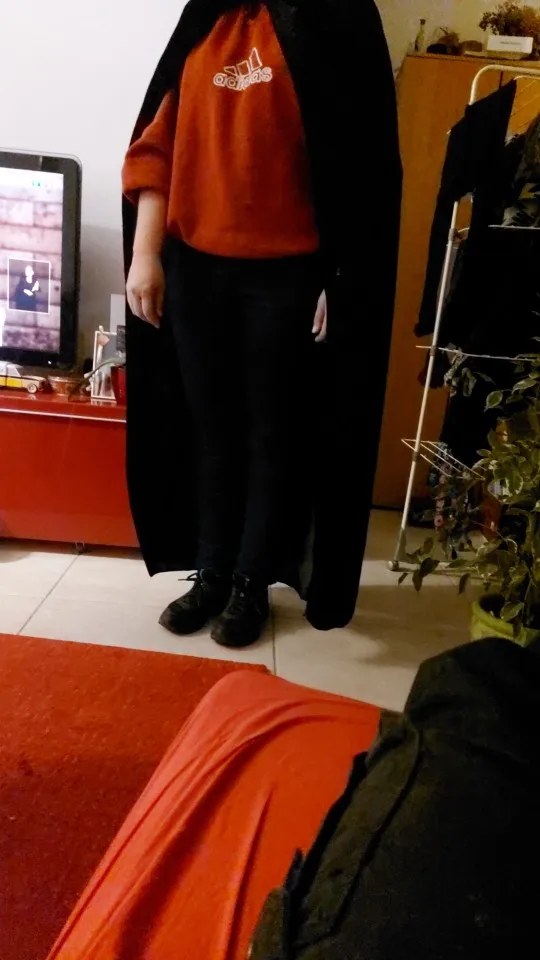 Не удалось достичь цели. Толстовка должна быть больше и плащ будет длиннее, чтобы создать эффект, который показан. Питти...