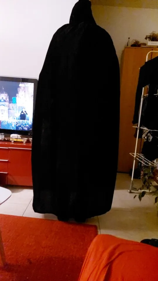 Плащ довольно сносного качества, просвечивает, капюшон маленький