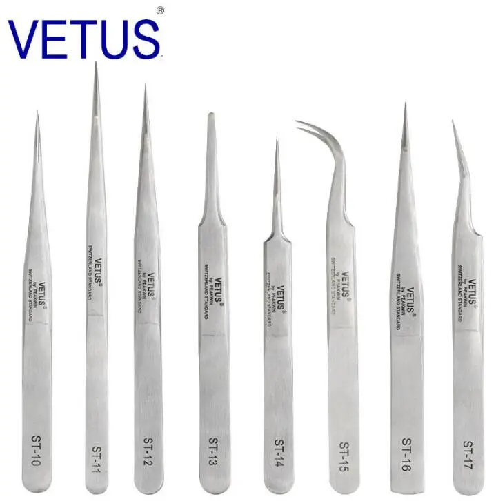 Пинцет VETUS ST из нержавеющей стали Антистатический для макияжа, Профессиональный пинцет для наращивания ресниц