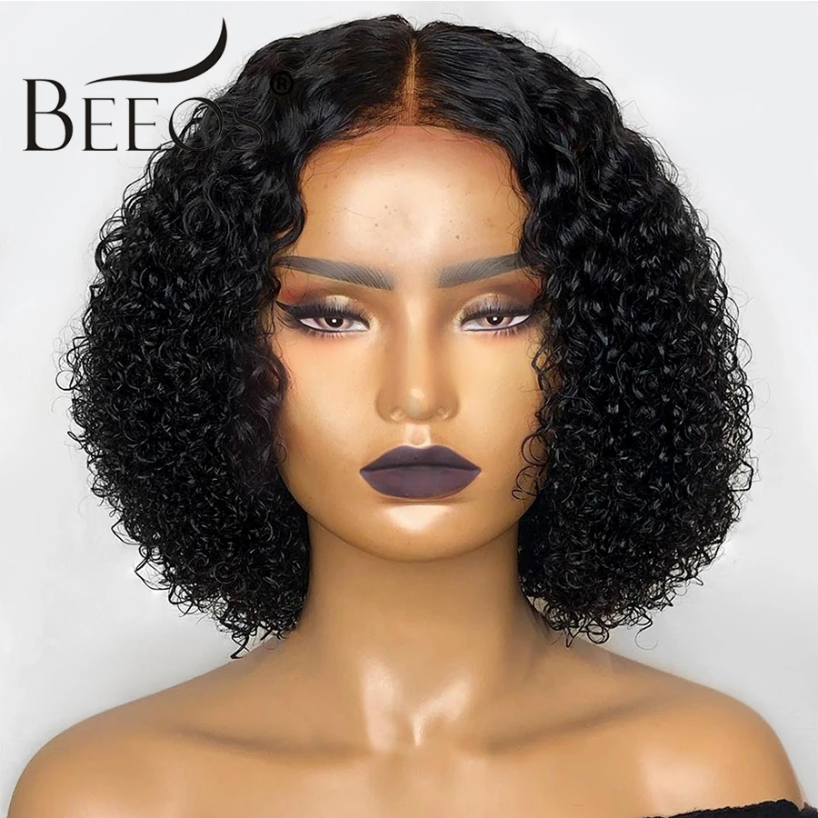 Закрывающиеся Короткие вьющиеся парики боб 150% парик на шнуровке средней части бразильские человеческие волосы парики для черных женщин 4 4 парик на шнуровке Remy Предварительно выщипанные
