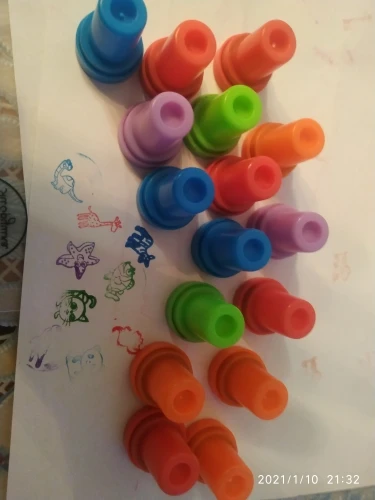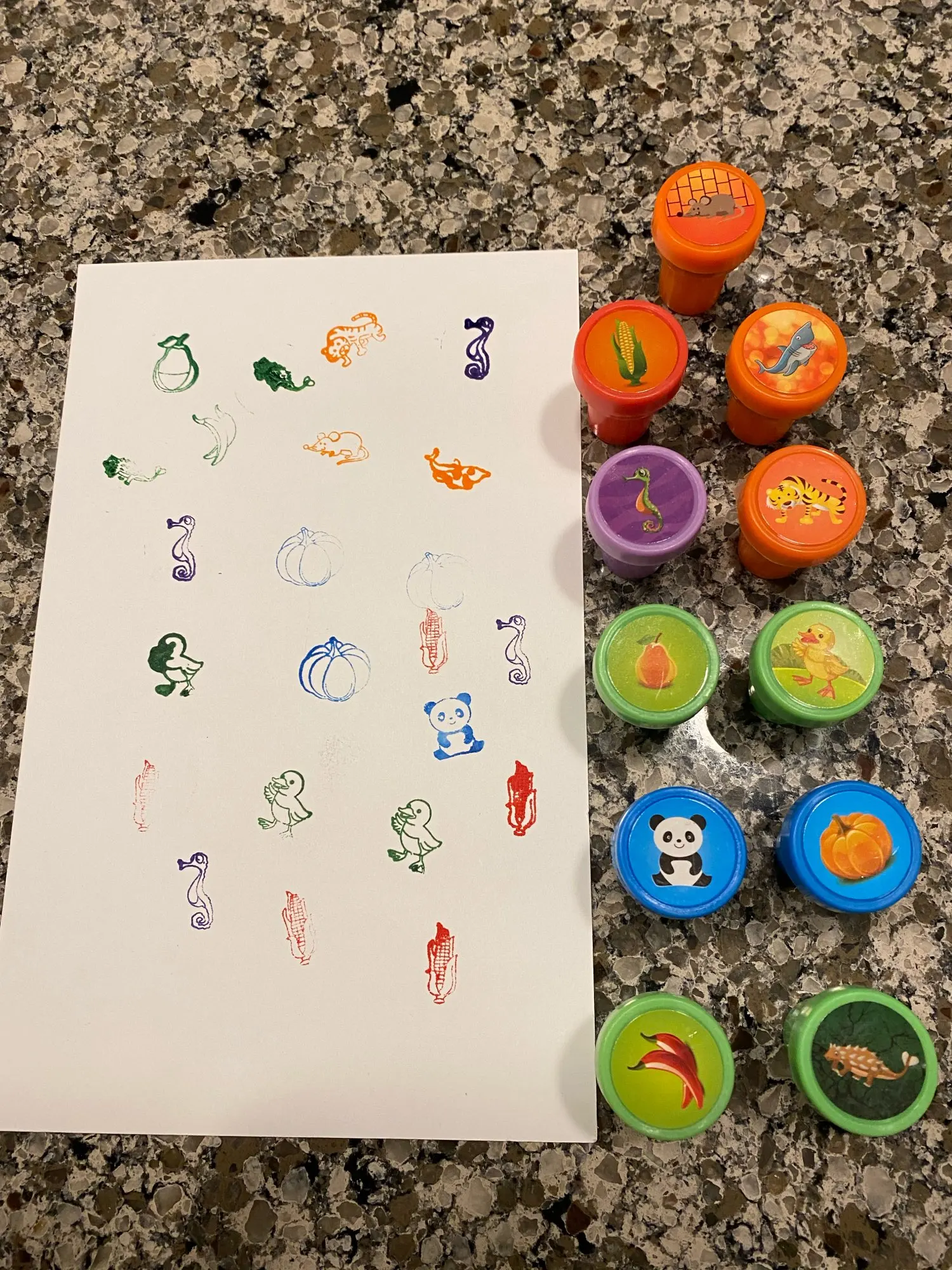 Все супер. Динозаврики класні, стемпи трішки деякі залишають багато фарби, через що розпливається зображення. Але загалом все добре