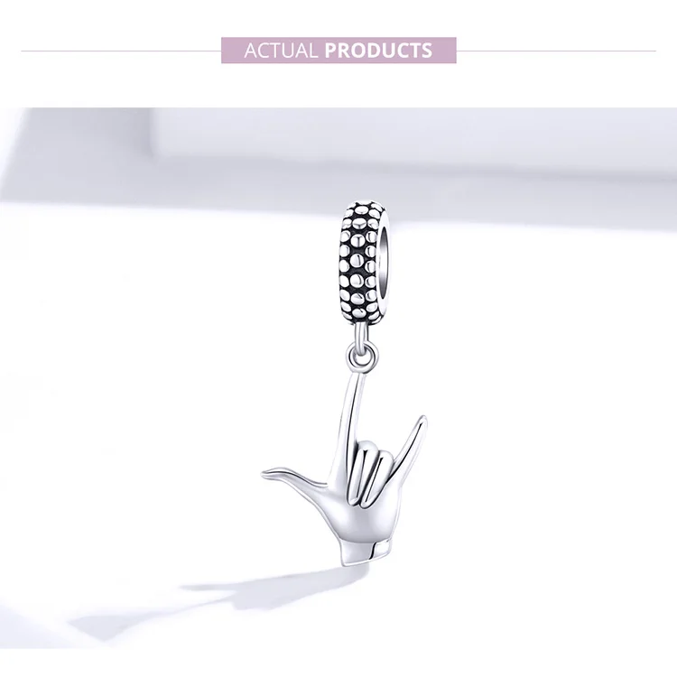 Название: bamoer подлинное серебро 925 пробы рок знак рога Подвеска Шарм Подходит оригинальный браслет или ожерелье DIY Ювелирные изделия SCC1438 Размер: 2,6*1,2 см Материал: S925 + оксидированный шелк Описание: с рок-жестами, так как элементы дизайна отражают любовь к жизни, любовь рок-н-ролла юного сердца.