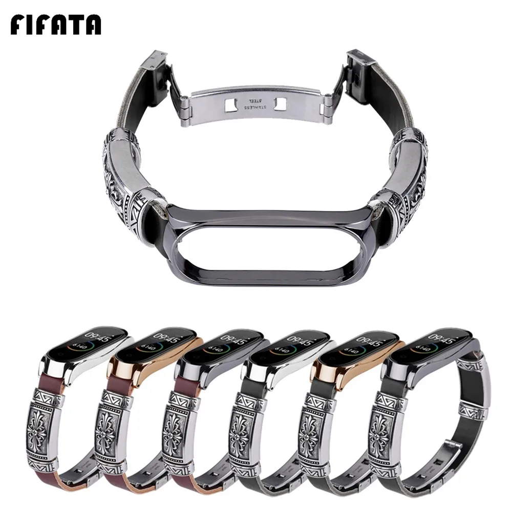 Браслет FIFATA для Xiaomi Mi Band 4 Mi Band 3, кожаный + металлический Смарт-браслет для Mi 4 Mi 3, спортивный аксессуар для часов