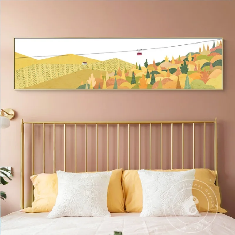 Настенные постеры в скандинавском стиле, настенные украшения для гостиной и спальни, с изображением пейзажа, прикроватного столика, дома