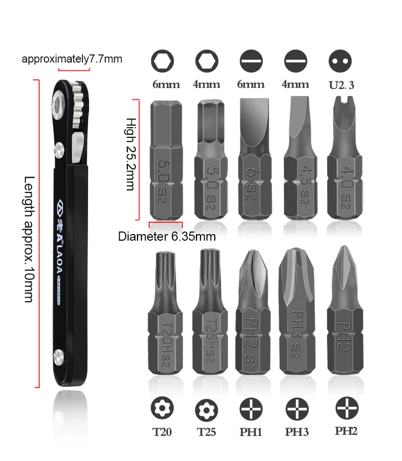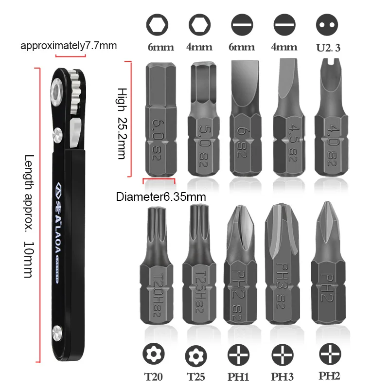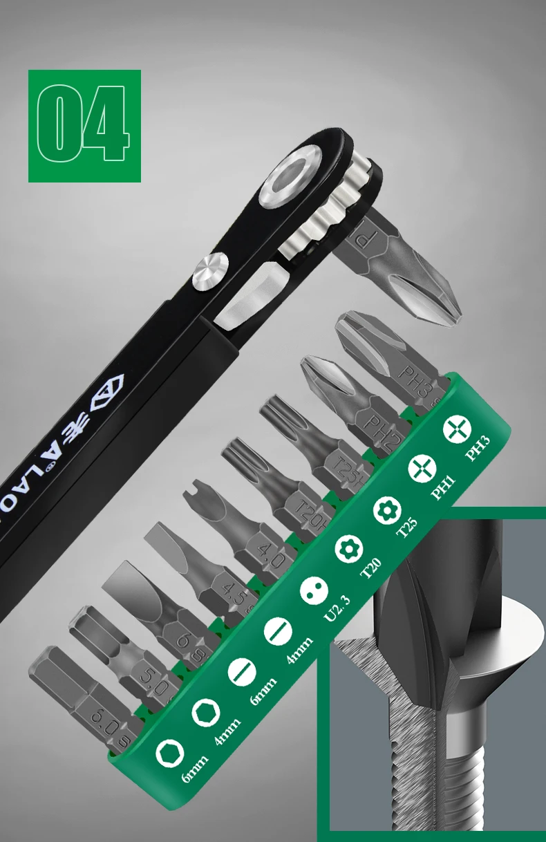 Набор отверток LAOA, 10 в 1, S2, многофункциональные инструменты, прямые и обратные, с насадками Torx